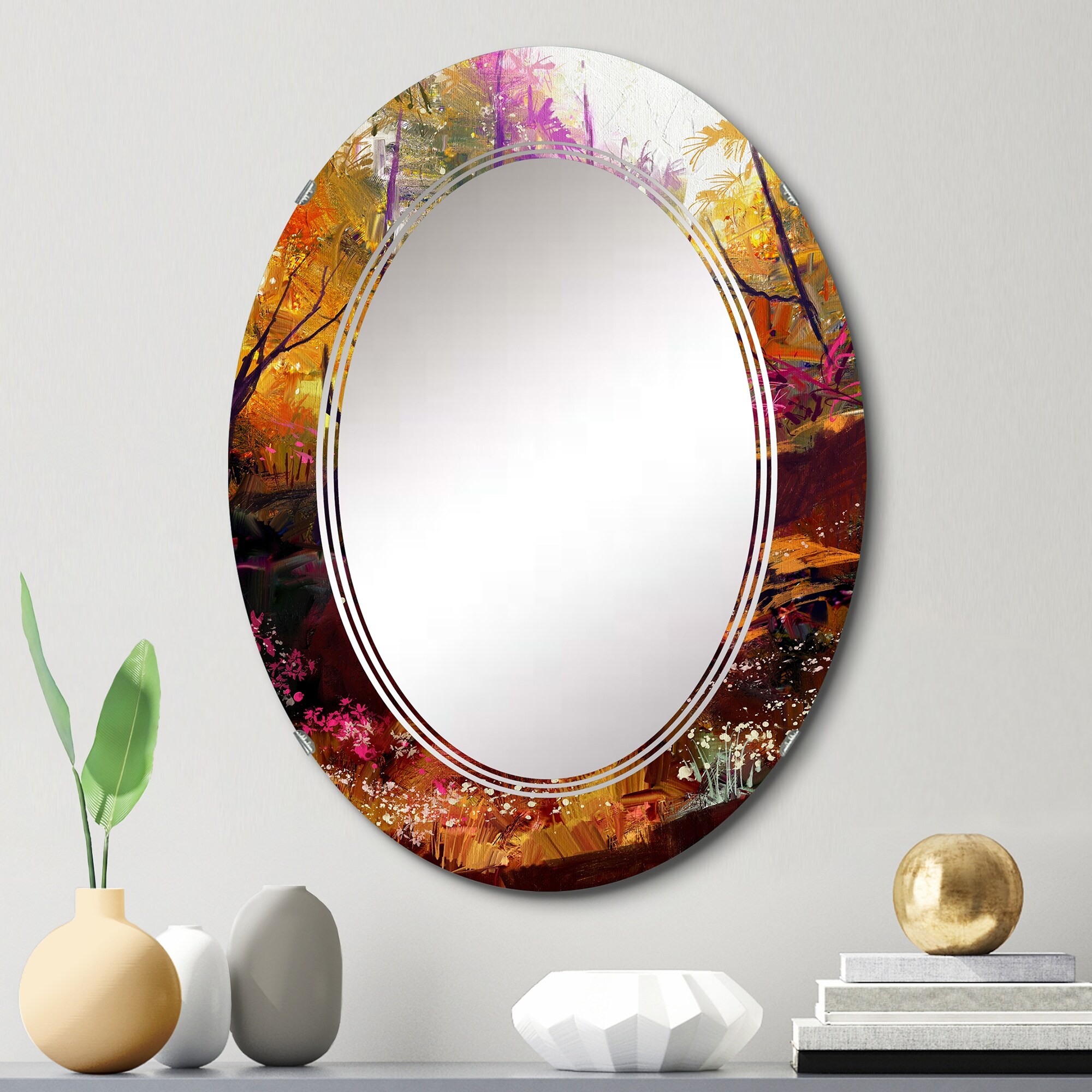 Designart 'Beautiful Autumn Forest With Sunlight' Printed Traditional Wall Mirror
