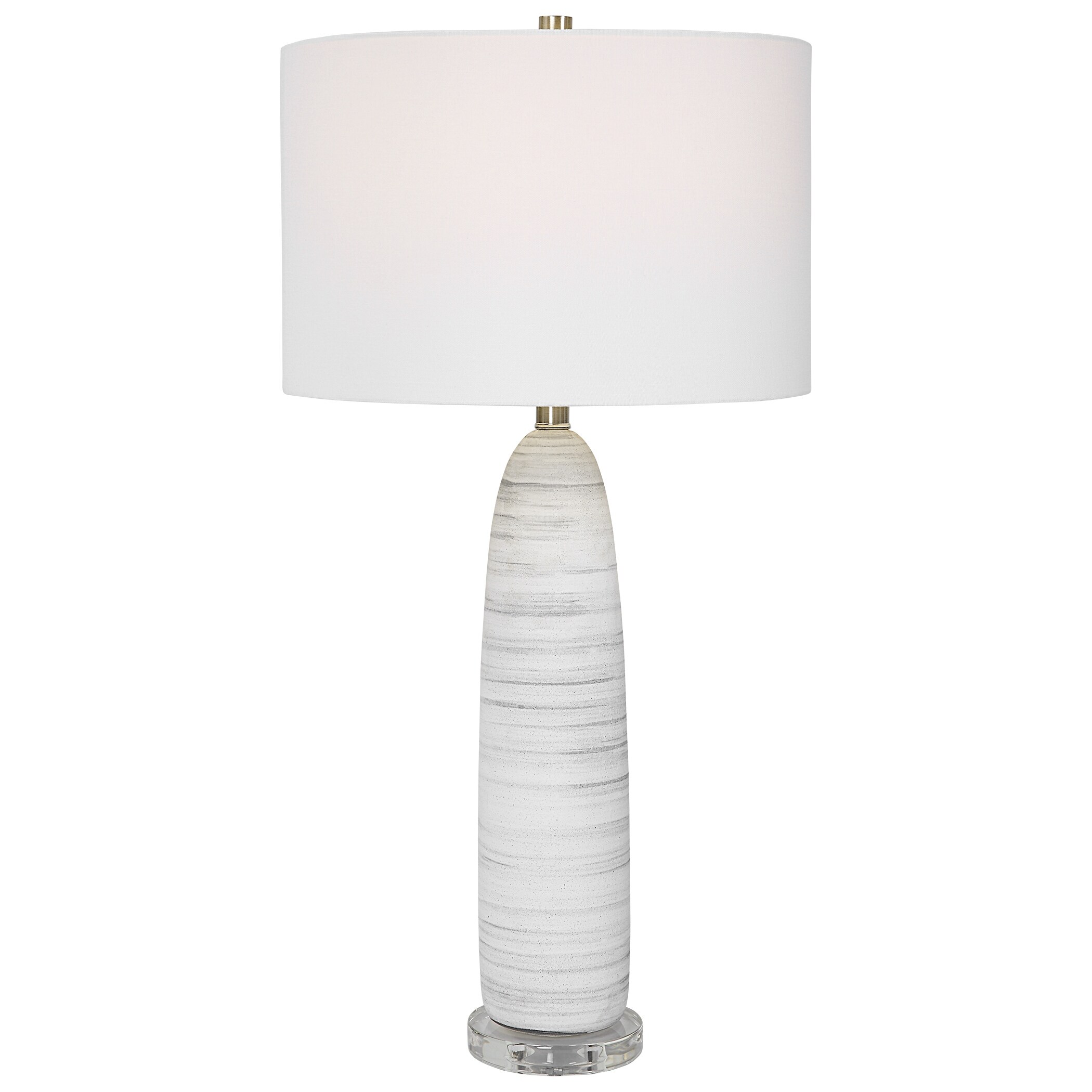 White Terracotta Table Lamps with Linen Shades (Set of 2)