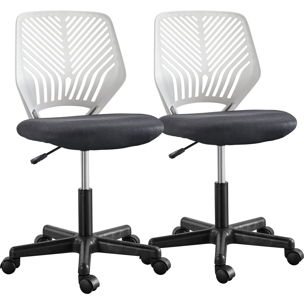 Adjustable Armless Mid Back Office Chair, Set of 2, Black