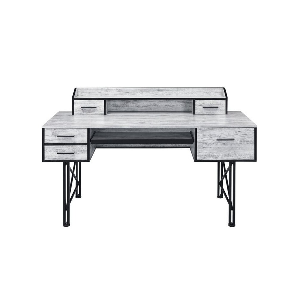 Glendale Grey Stone Herringbone and Black Ladder Desk