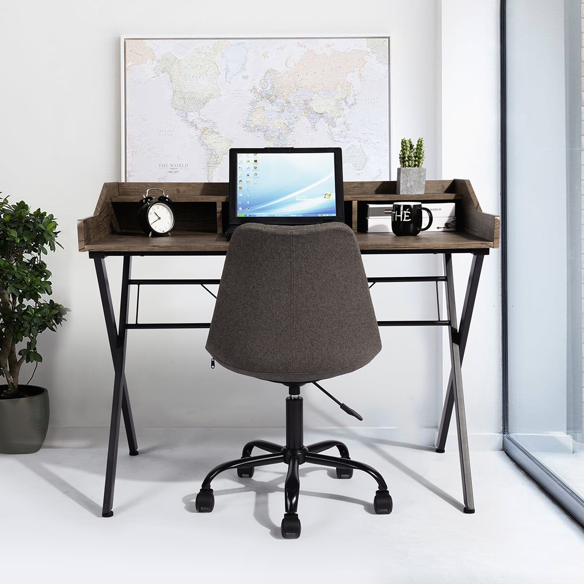 Desk Computer Desk Modern Workstation Business Desk Rustic Brown Black
