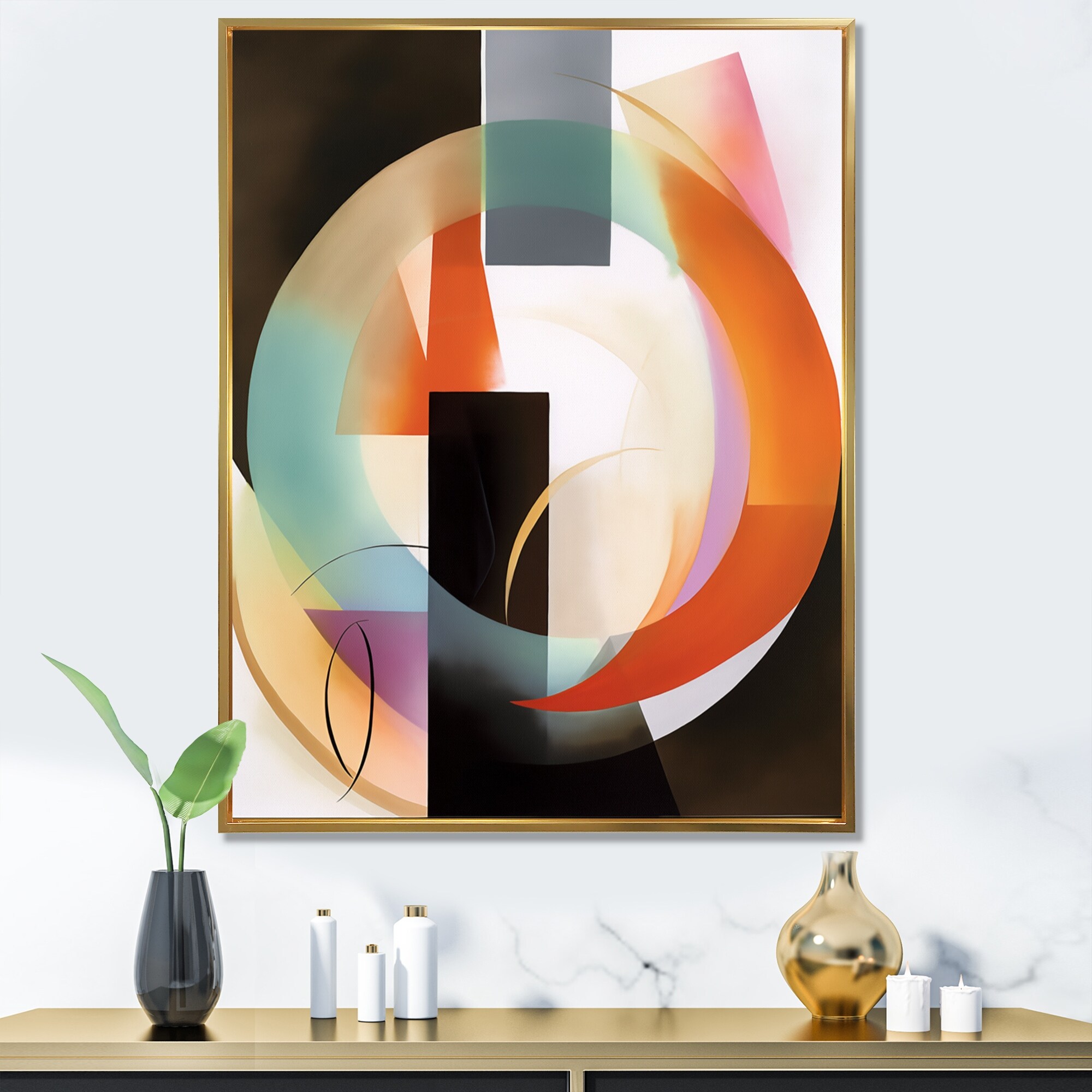 Designart "Orange Geometric Rhythms I" Modern Geometric Framed Canvas Prints