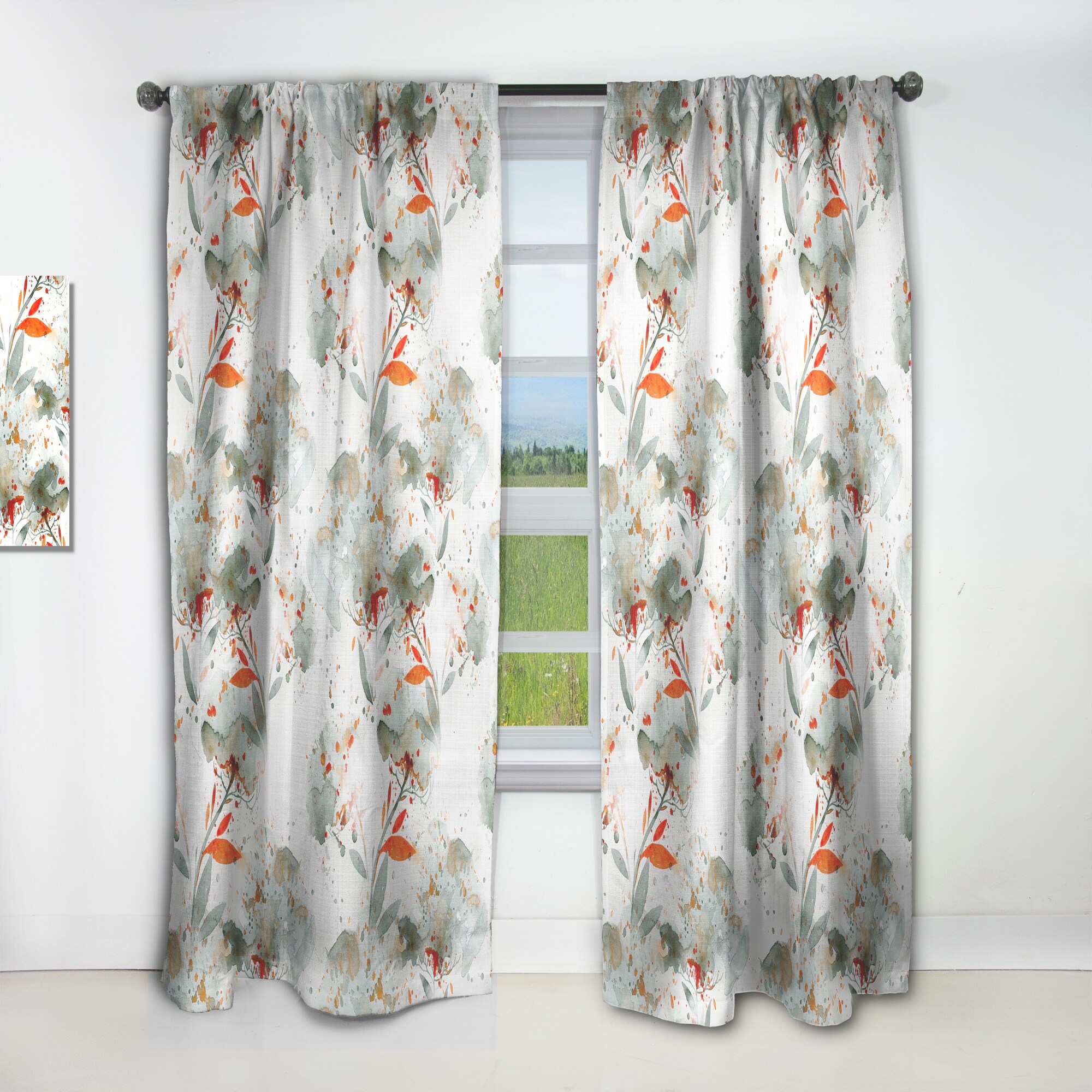 Designart 'Green and Orange Wildflowers I' Modern Curtain Single Panel