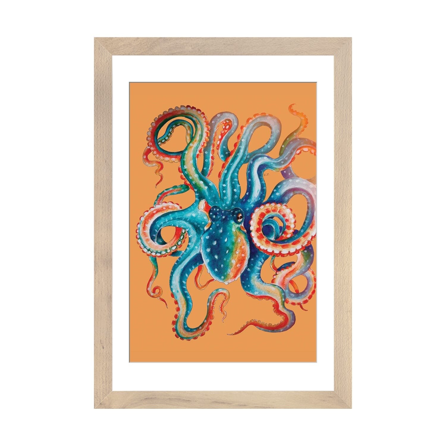 iCanvas "Octopus Teal on Orange Watercolor Art" by Seven Sirens Studios