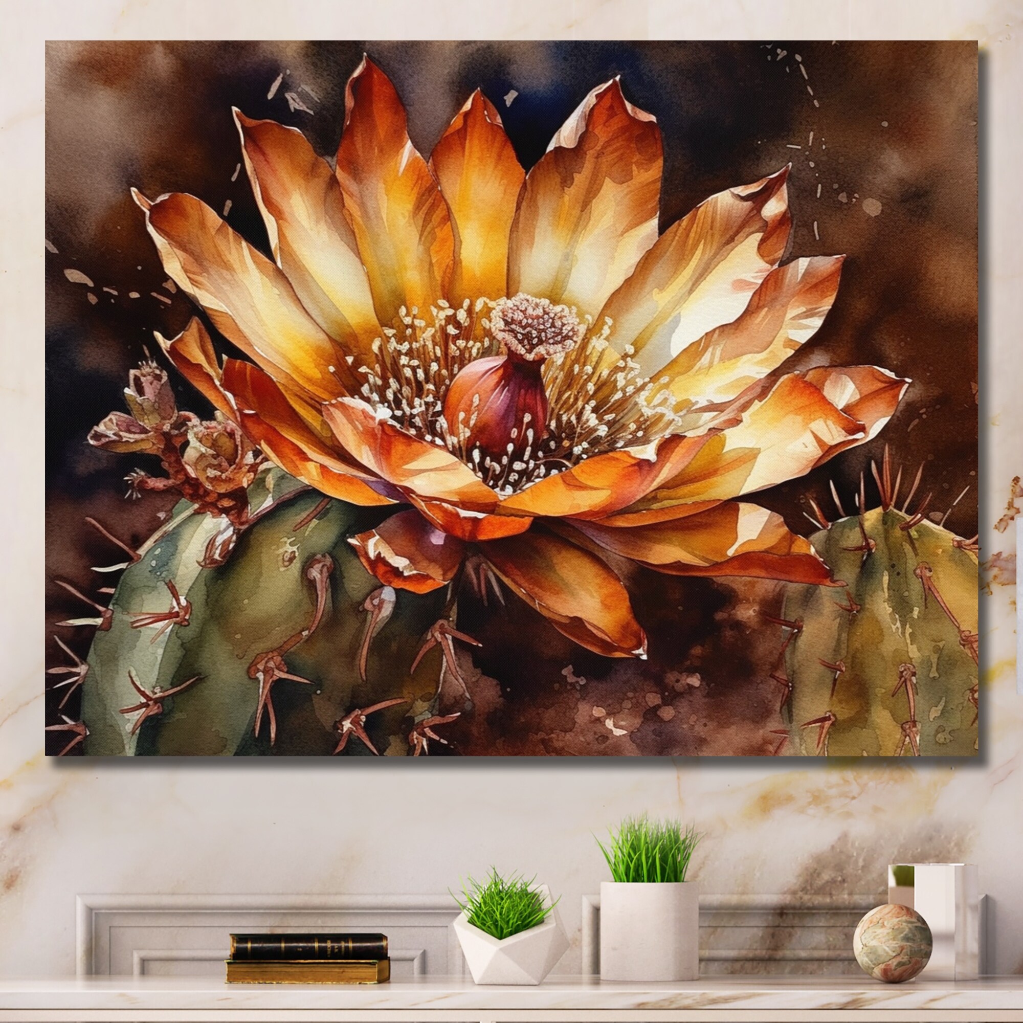 Designart "Orange Green Cactus Flower Ii" Floral Cactus Wall Decor