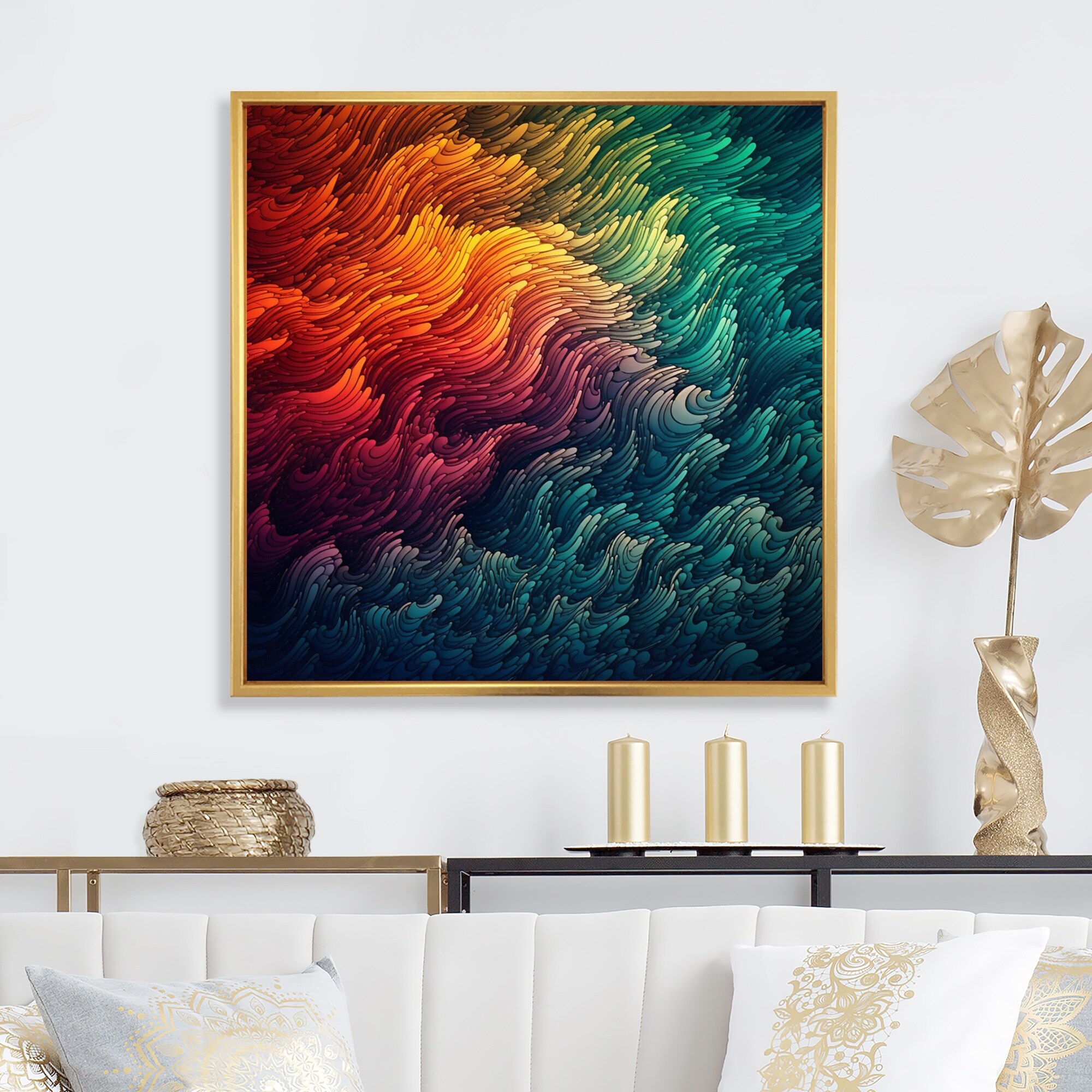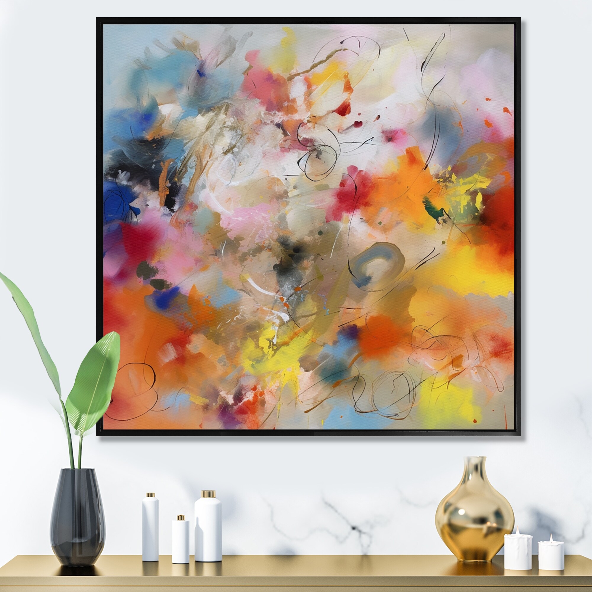 Designart "Blue, Yellow and Orange Colorful Whirls VIII" Minimalism Framed Canvas Art Print