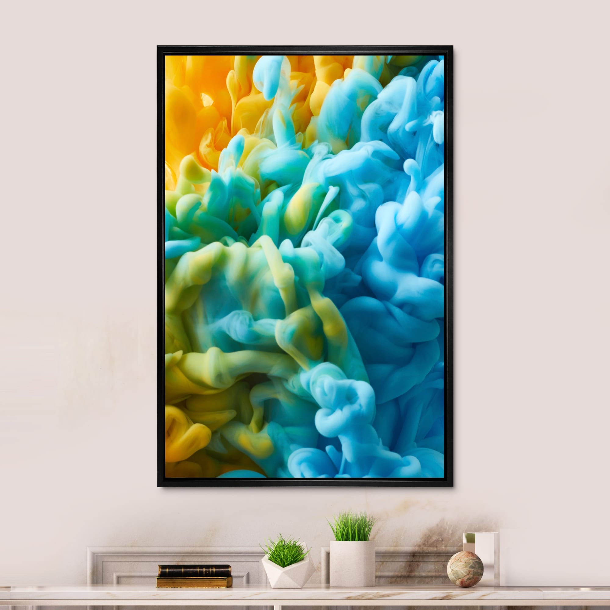 Designart "Orange And Blue Liquid Ink Art IV" Modern Framed Canvas Art Print