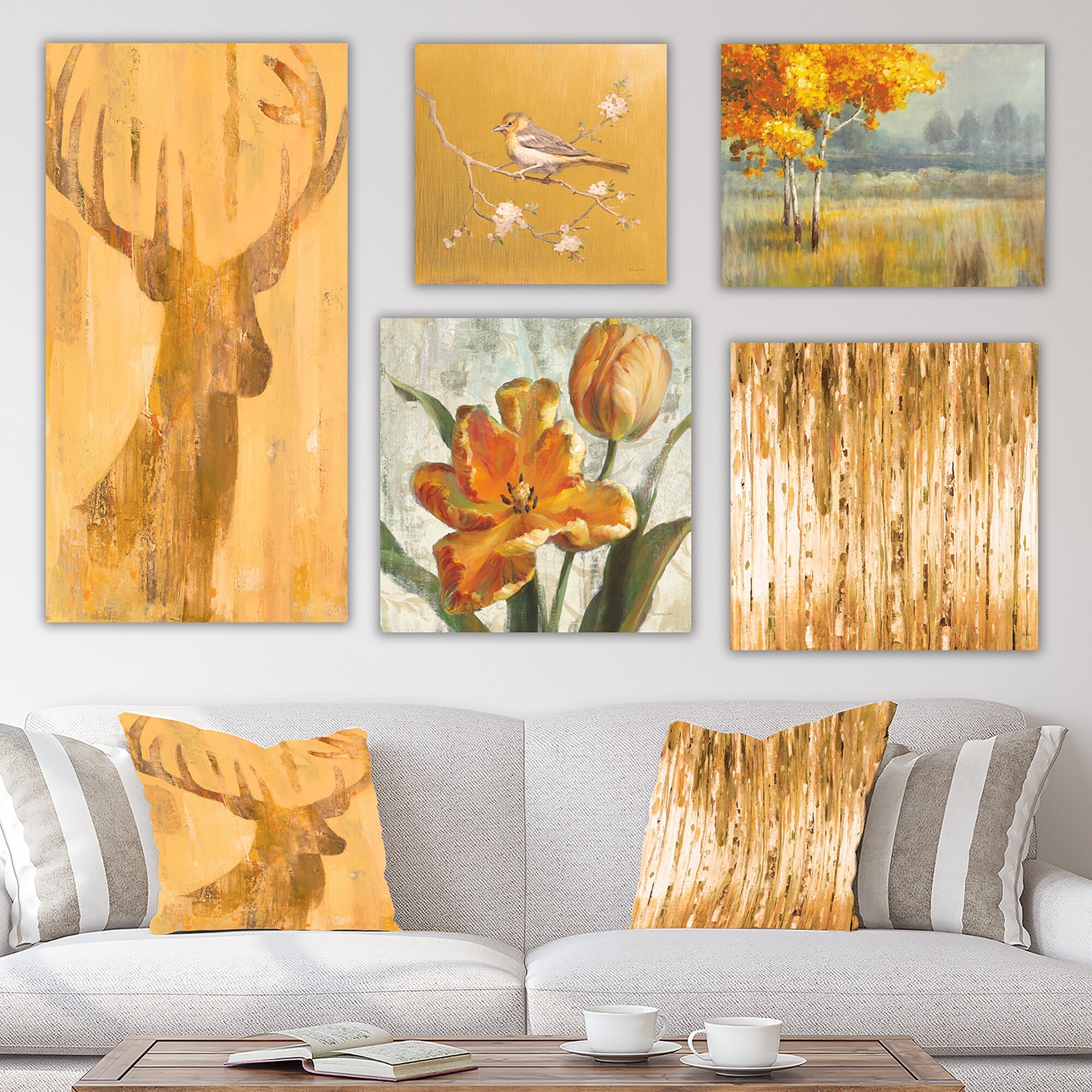 Designart "Orange Forest Collection" Traditional Wall Art set of 5 pieces