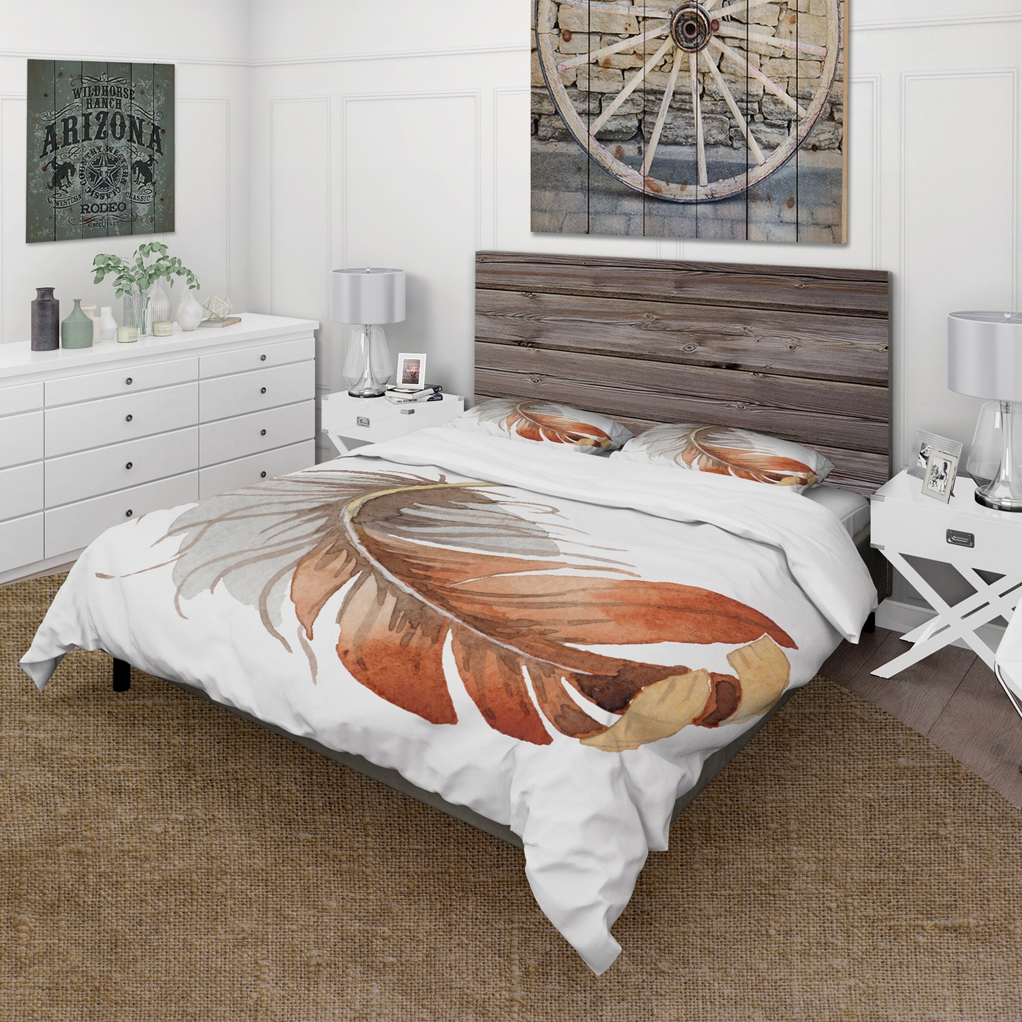 Designart 'Orange Ethnic Bird Feather' Bohemian & Eclectic Duvet Cover Set