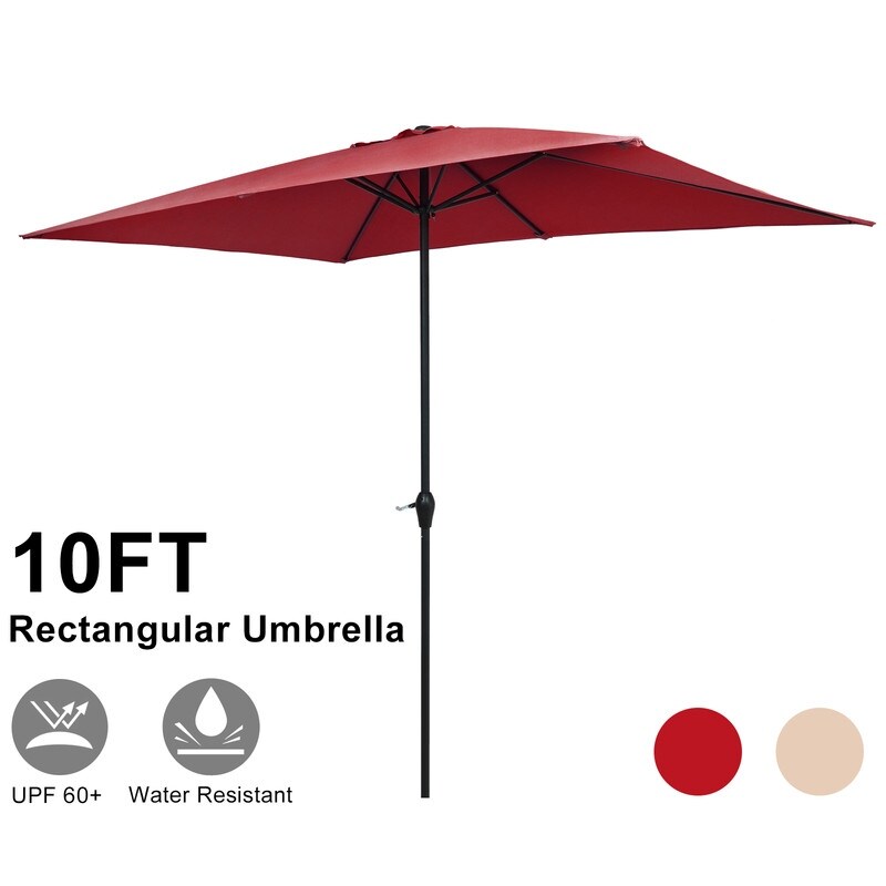 Classic Style 10-foot Rectangular Umbrella Red Khaki