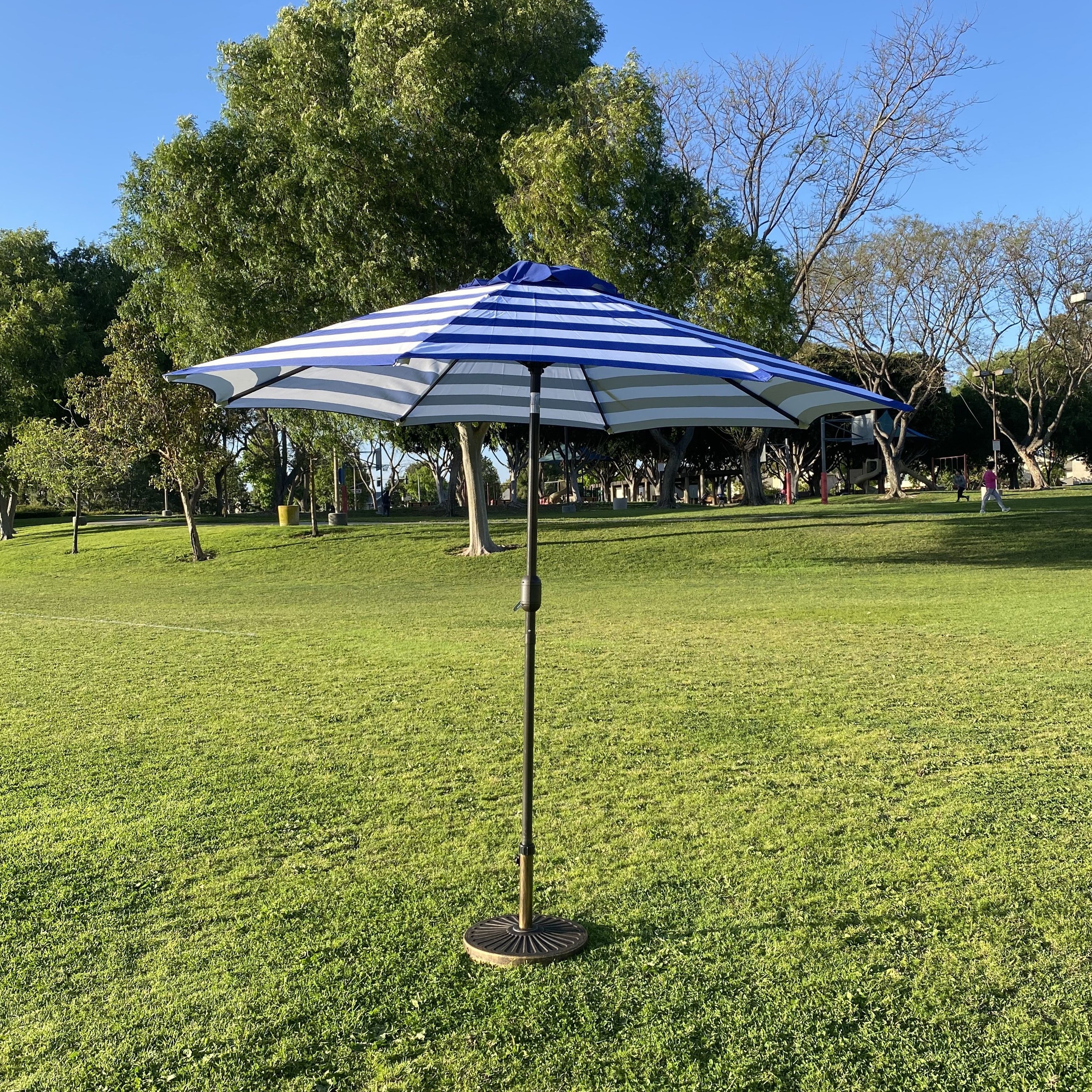 9 Feet Blue/White Strip Patic Umbrella with Tilt and Crank