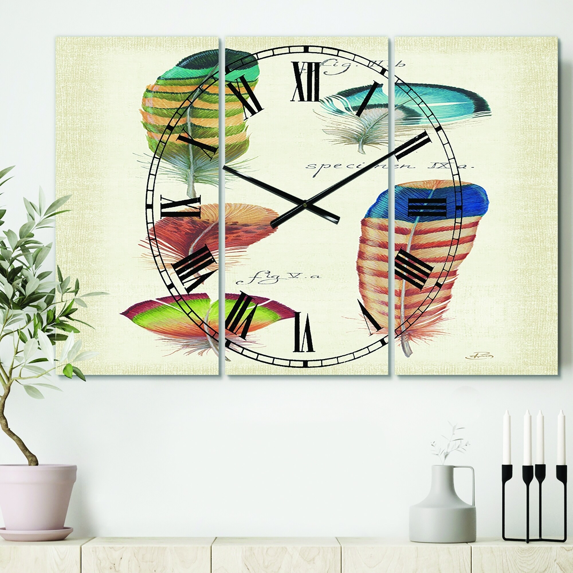 Designart 'Feathers Cottage Family II' Cottage 3 Panels Oversized Wall CLock - 36 in. wide x 28 in. high - 3 panels