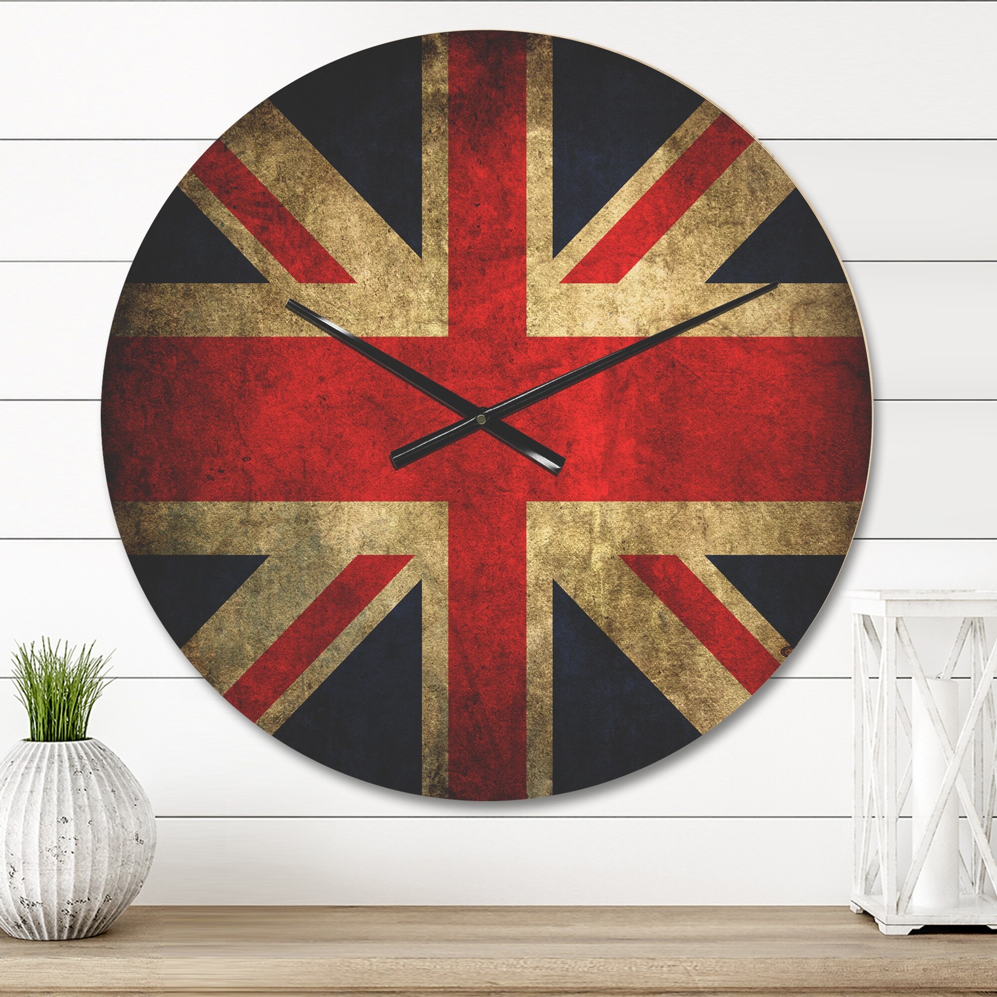 Designart 'Vintage UK Flag' Oversized Global Wall CLock