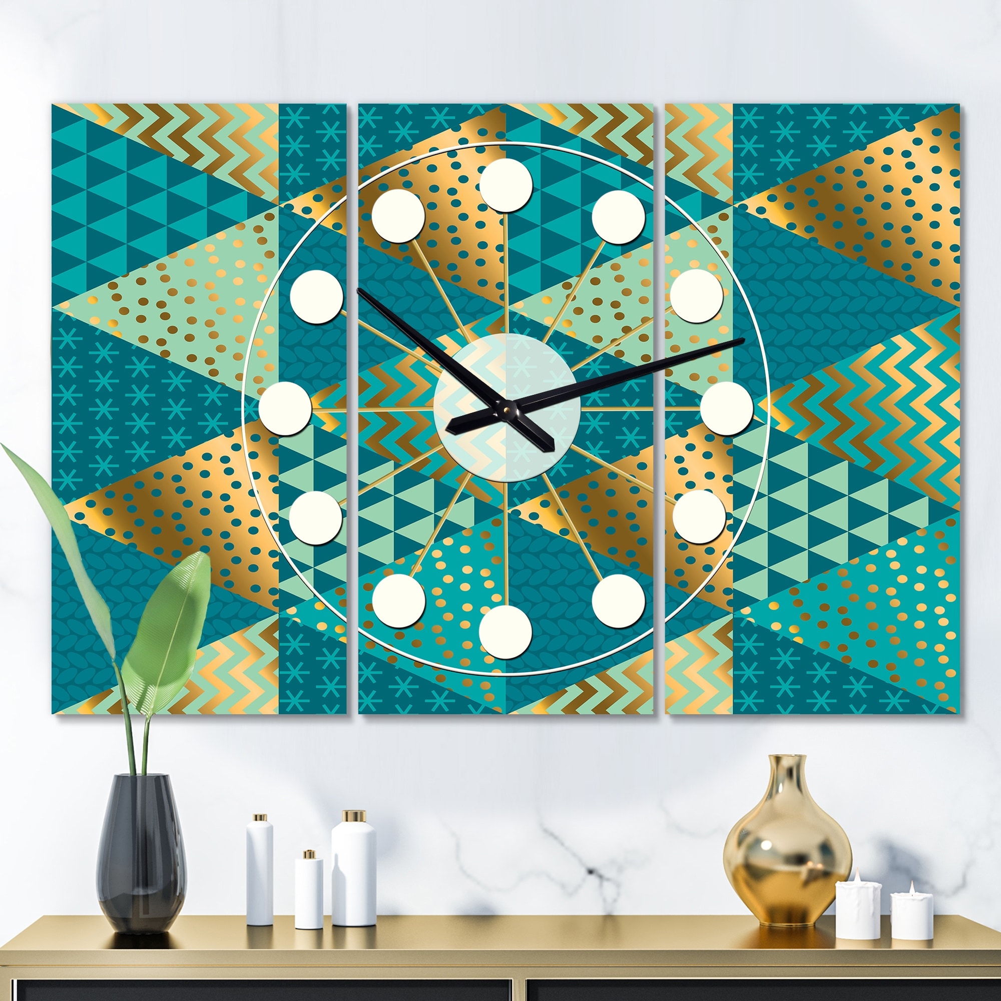 Designart 'Retro Hexagon Pattern I' Oversized Mid-Century wall clock - 3 Panels - 36 in. wide x 28 in. high - 3 Panels