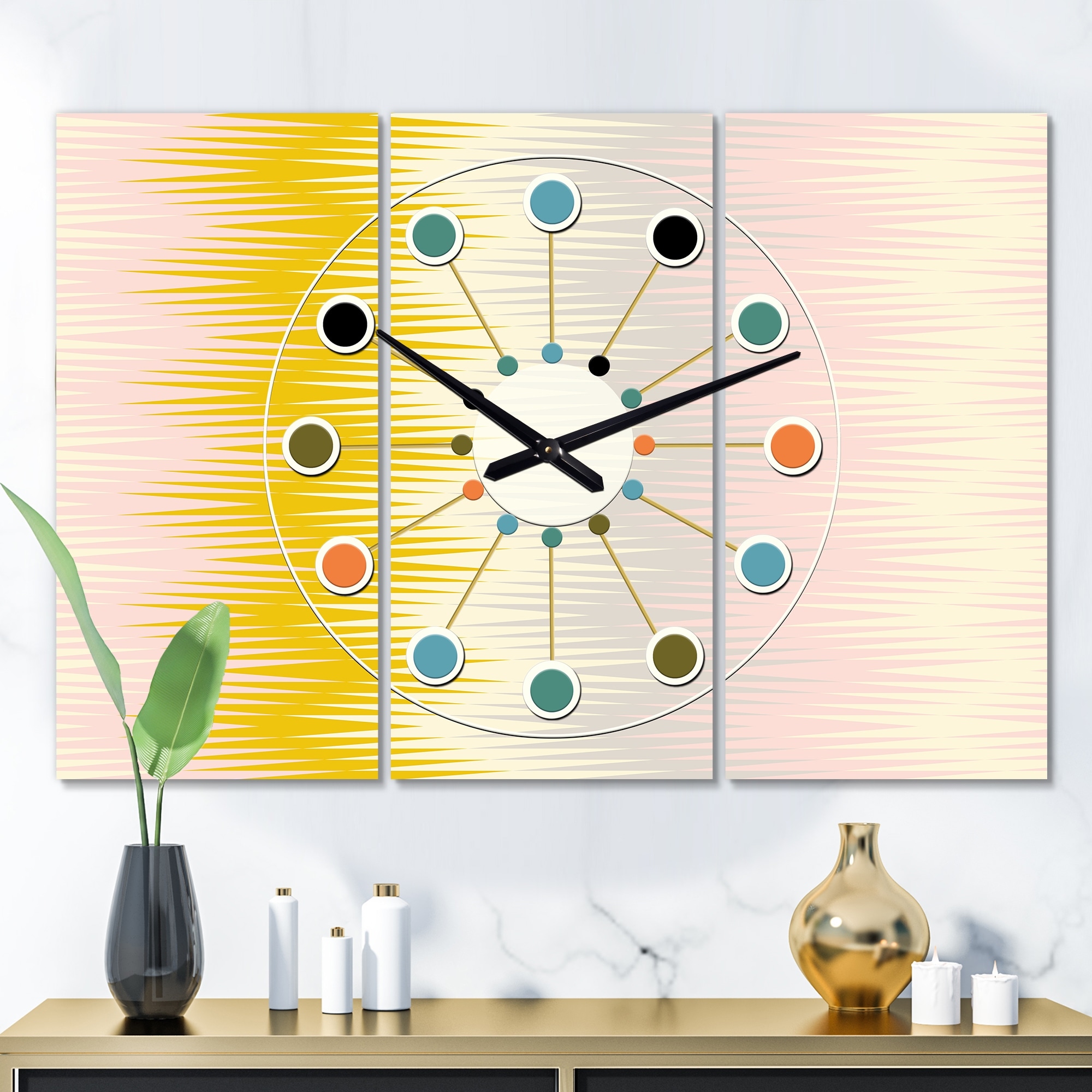 Designart 'Abstract Geometric Circular Retro II' Oversized Mid-Century wall clock - 3 Panels