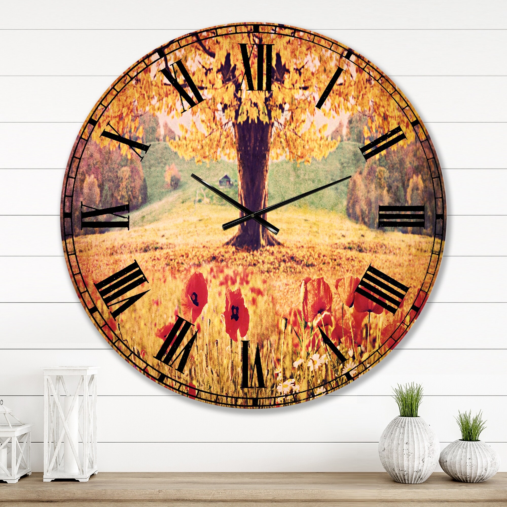 Designart 'Landscape with Poppy Flowers' Photography Oversized Wall CLock