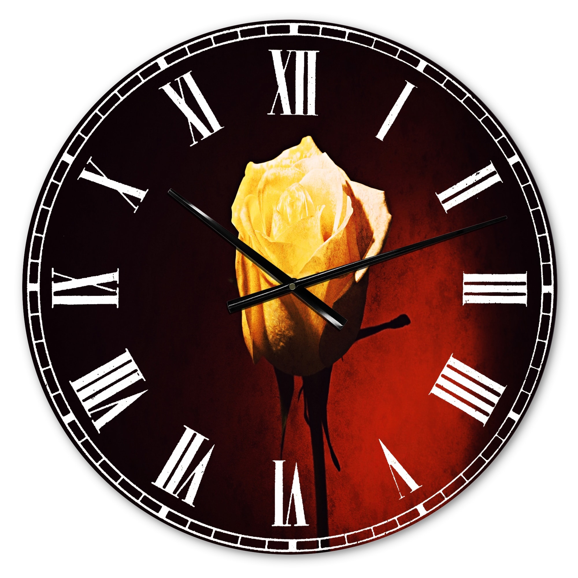 Designart 'Beautiful Yellow Colored Rose' Oversized Floral Wall CLock