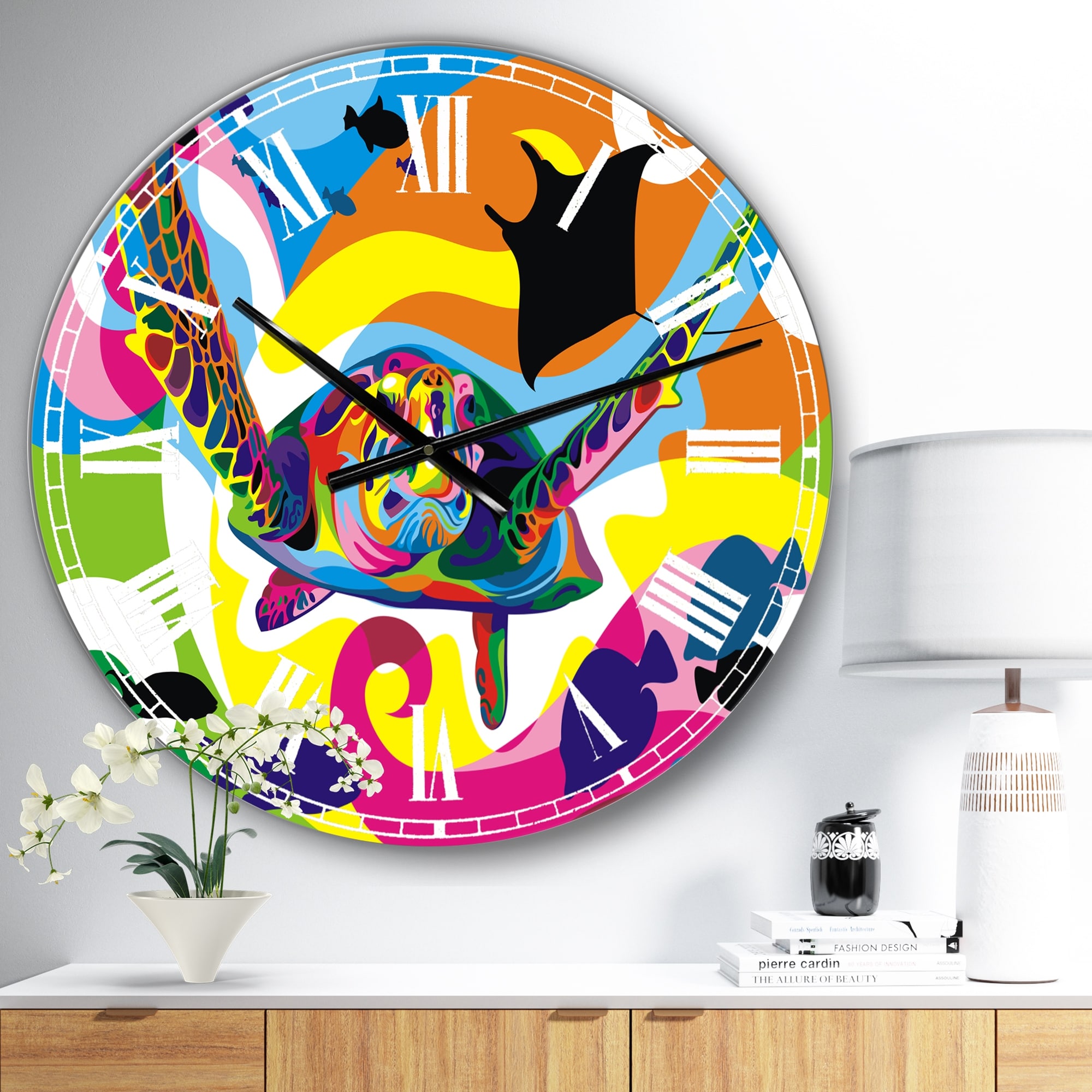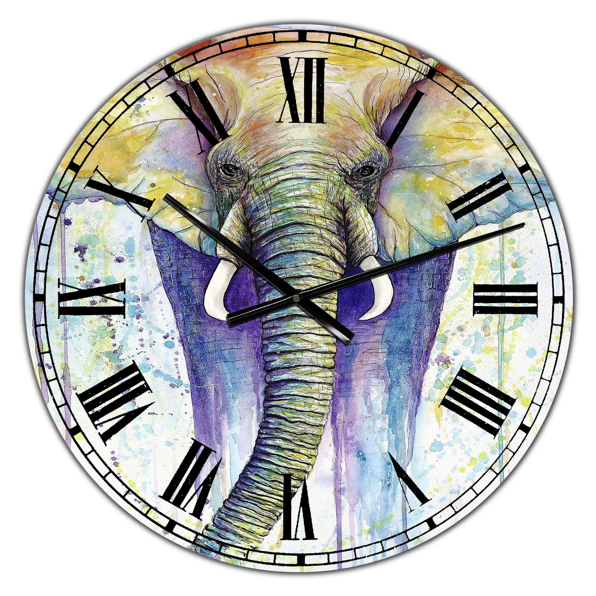 Designart 'Elephant Colors' Oversized Cottage Wall Clock
