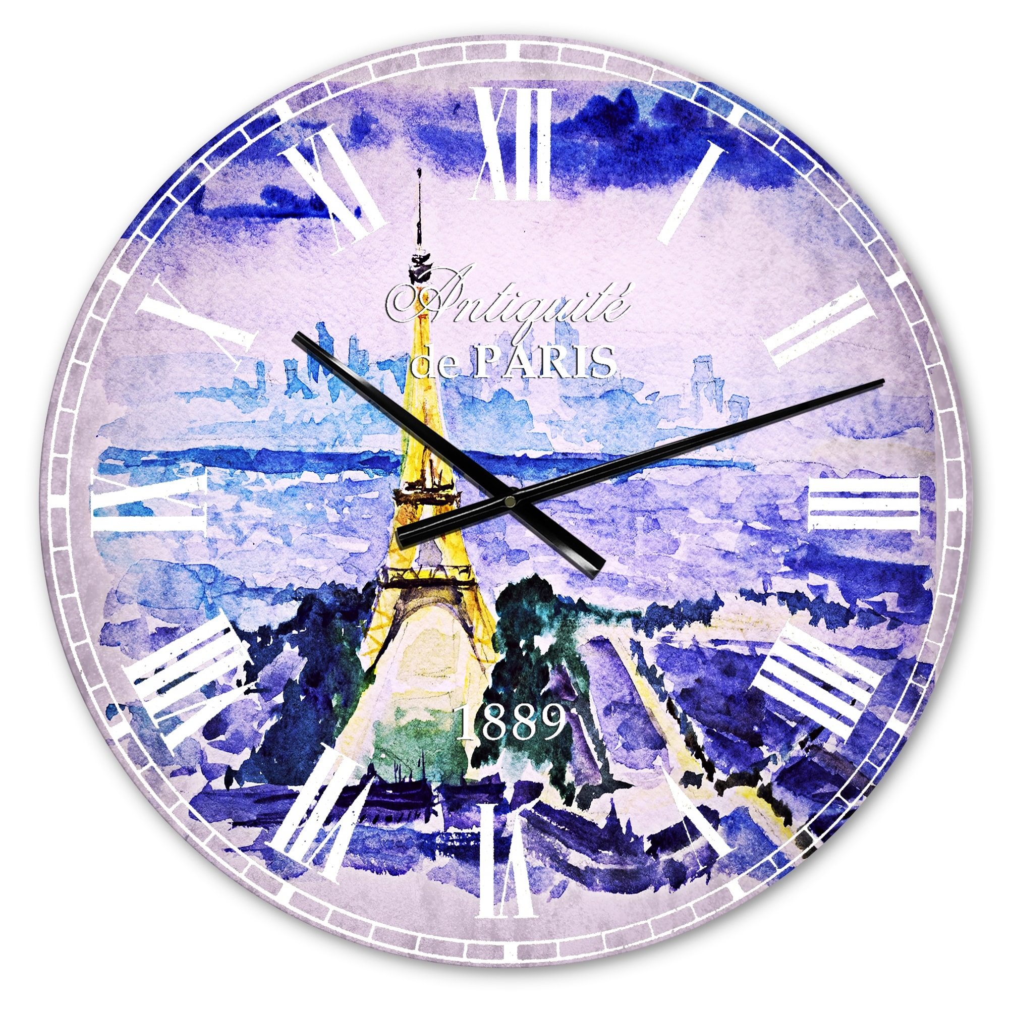 Designart 'Paris Eiffel Toweron Blue Background' Contemporary Oversized Wall CLock