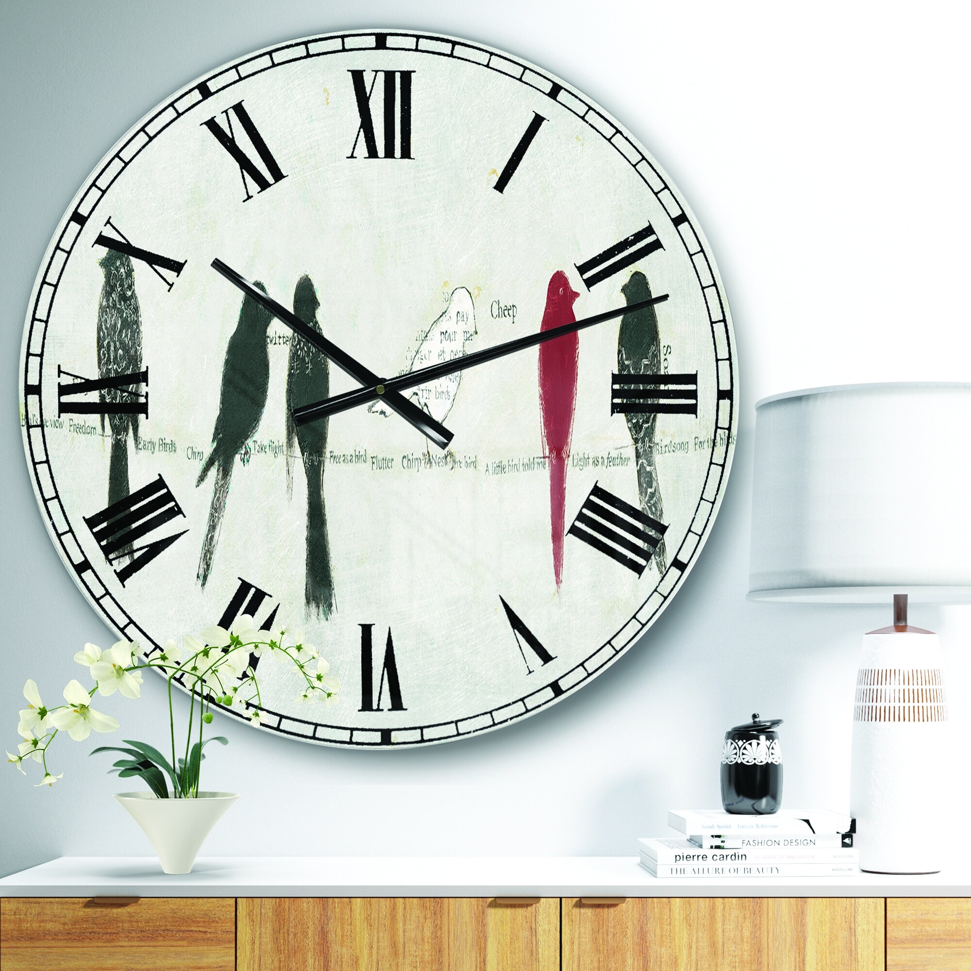 Designart 'Red Catching Up Bird Family' Farmhouse Oversized Wall CLock