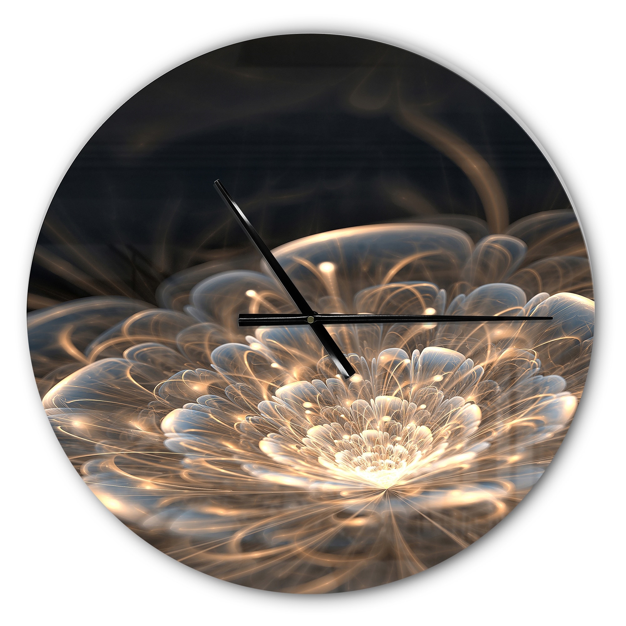 Designart 'Fractal Flower with Golden Rays' Oversized Floral Wall CLock