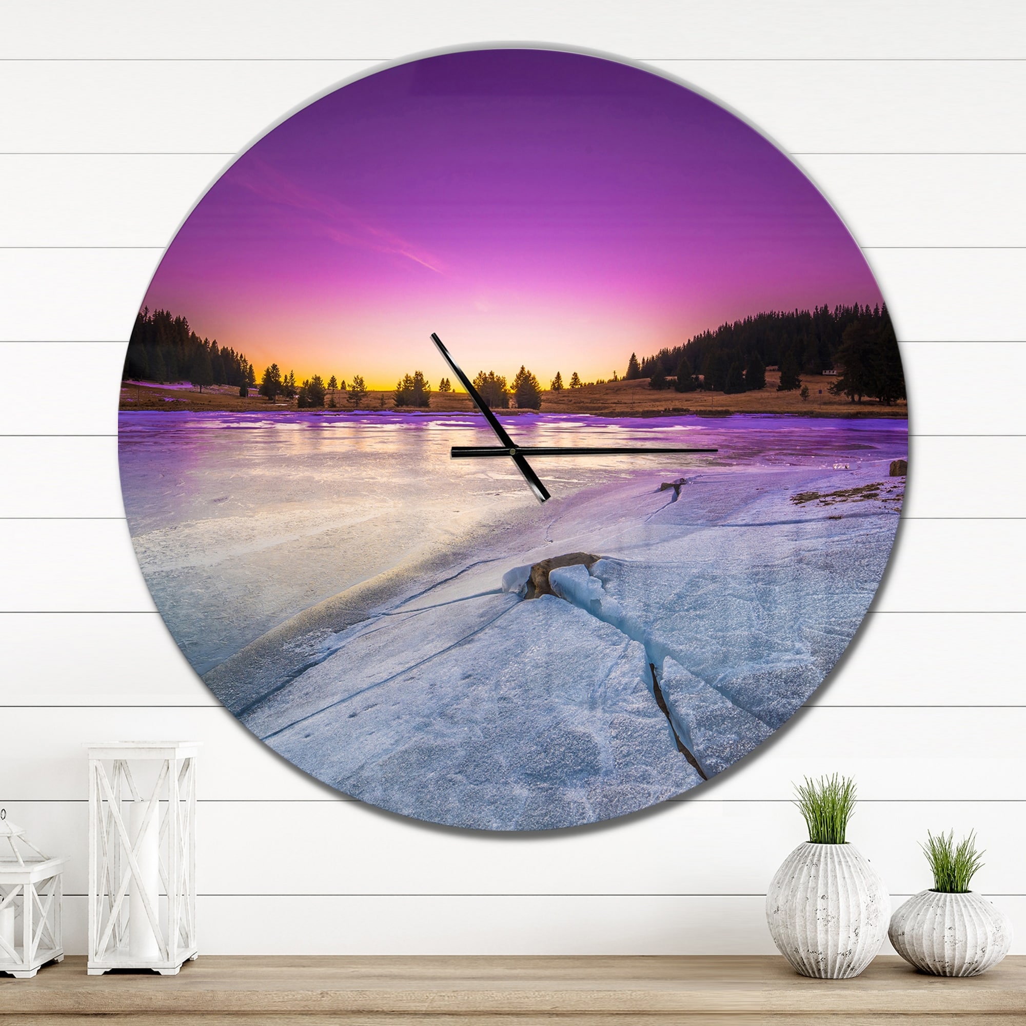Designart 'Sunrise over Frozen Lake' Oversized Landscapes Wall CLock