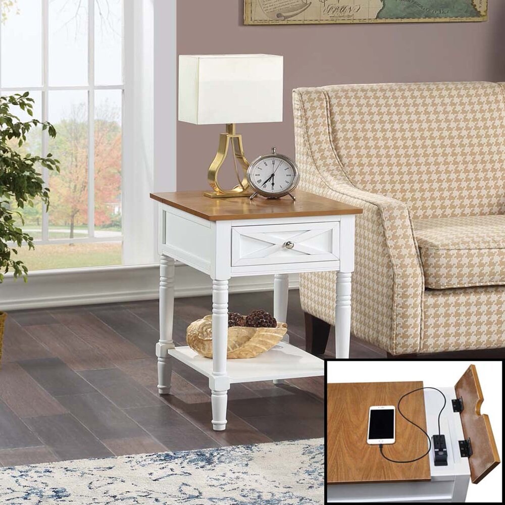 Country Oxford 1 Drawer End Table with Charging Station and Shelf