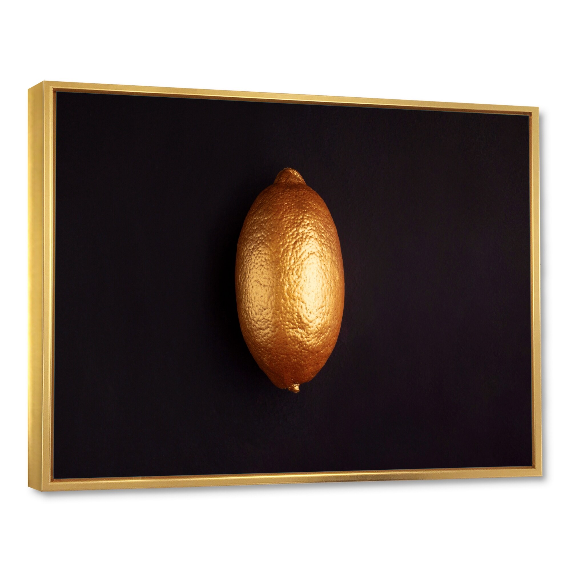Designart "Gold Painted Tropical Fruits on Black I" Traditional Framed Canvas Wall Art Print