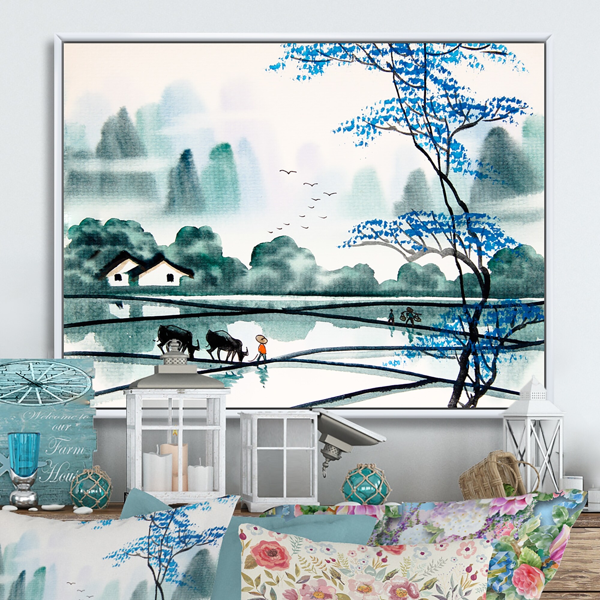 Designart "Chinese Landscape Painting" Traditional Framed Canvas Wall Decor