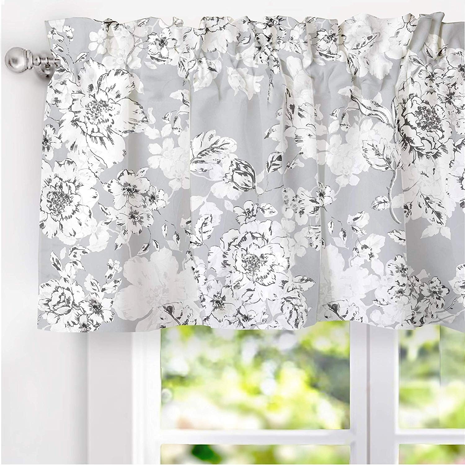 DriftAway Floral Pencil Sketch Pattern Lined Window Valance Pair - 52'' width x 18'' length