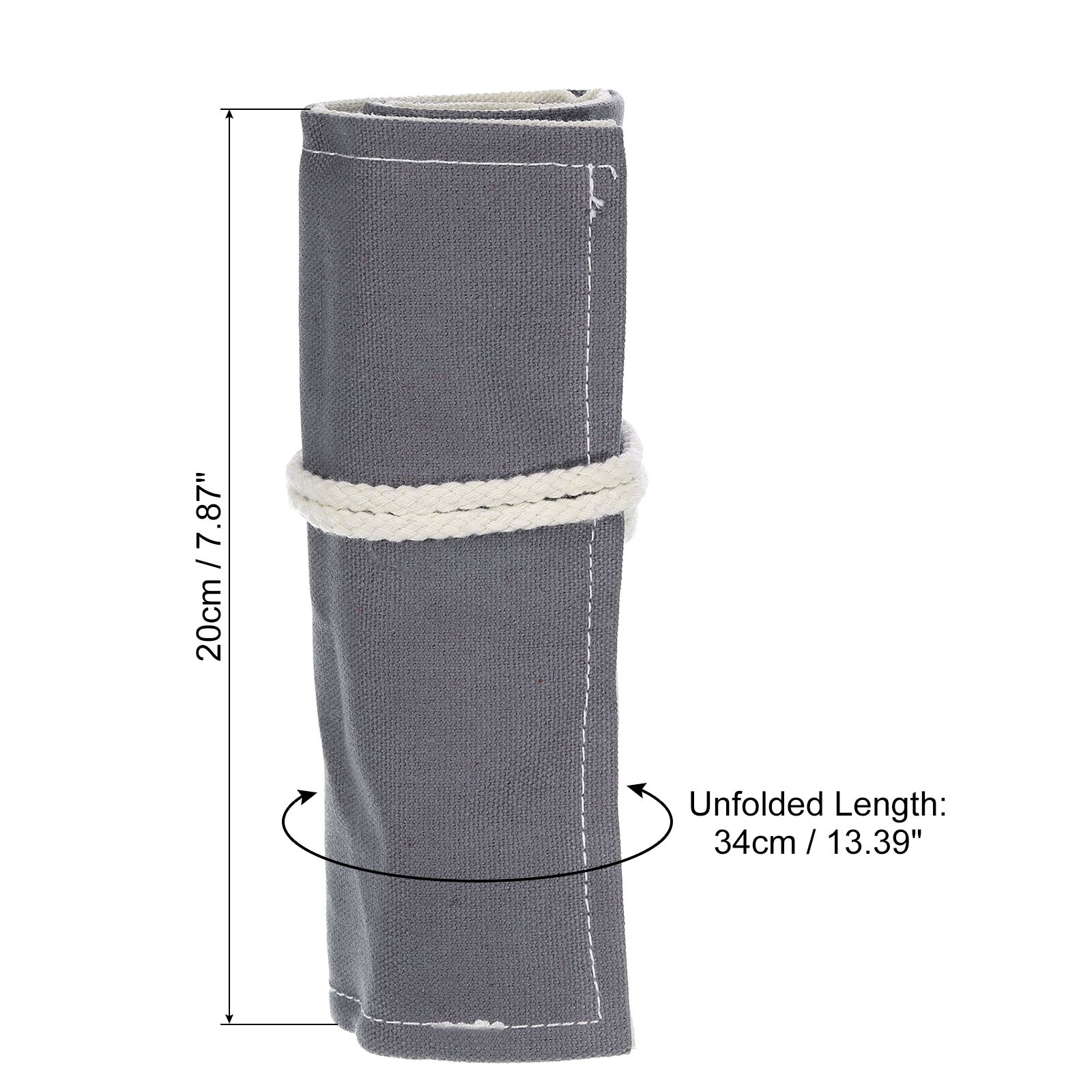 Handmade Roll Up Pencil Case, Canvas Pencil Wrap Pouch Gray
