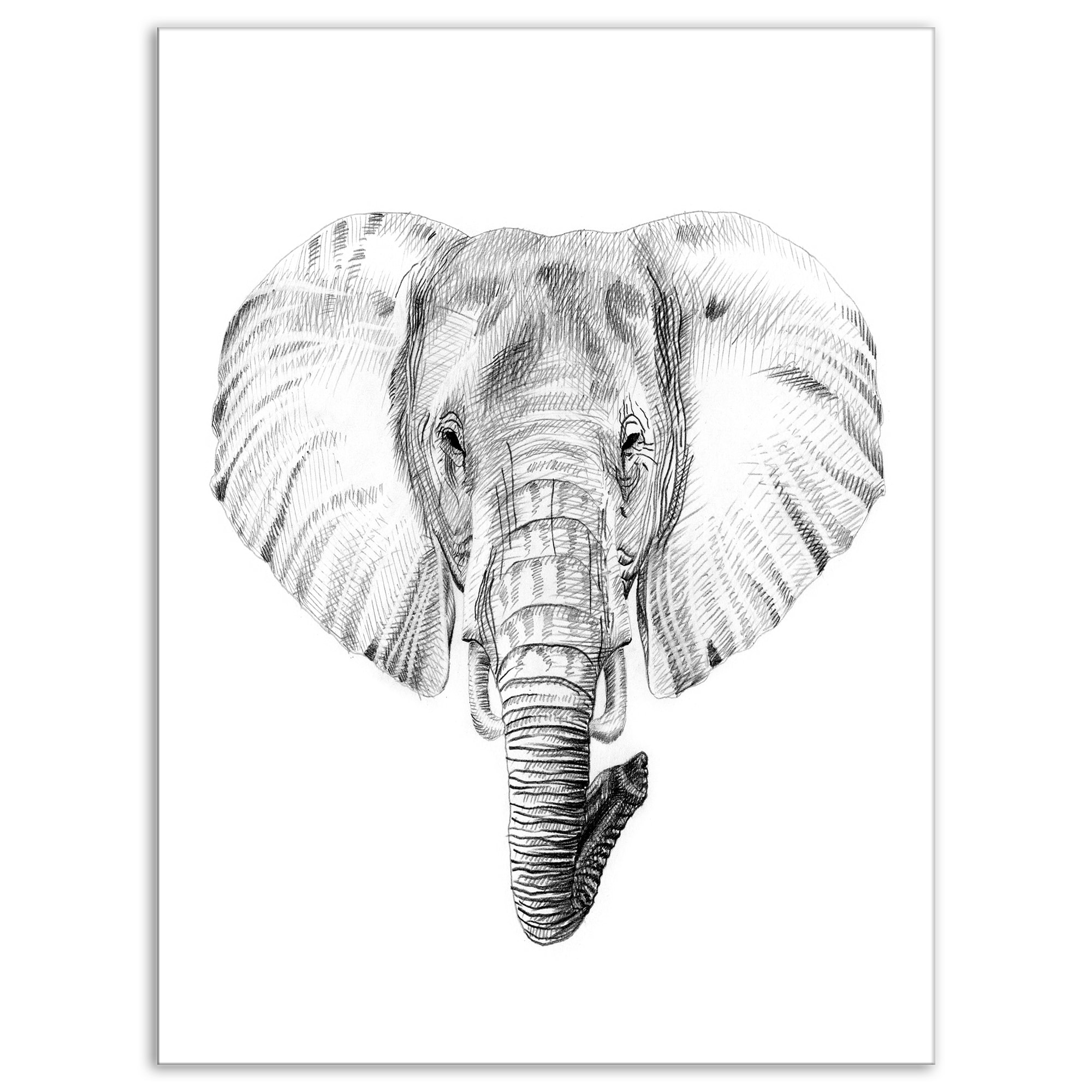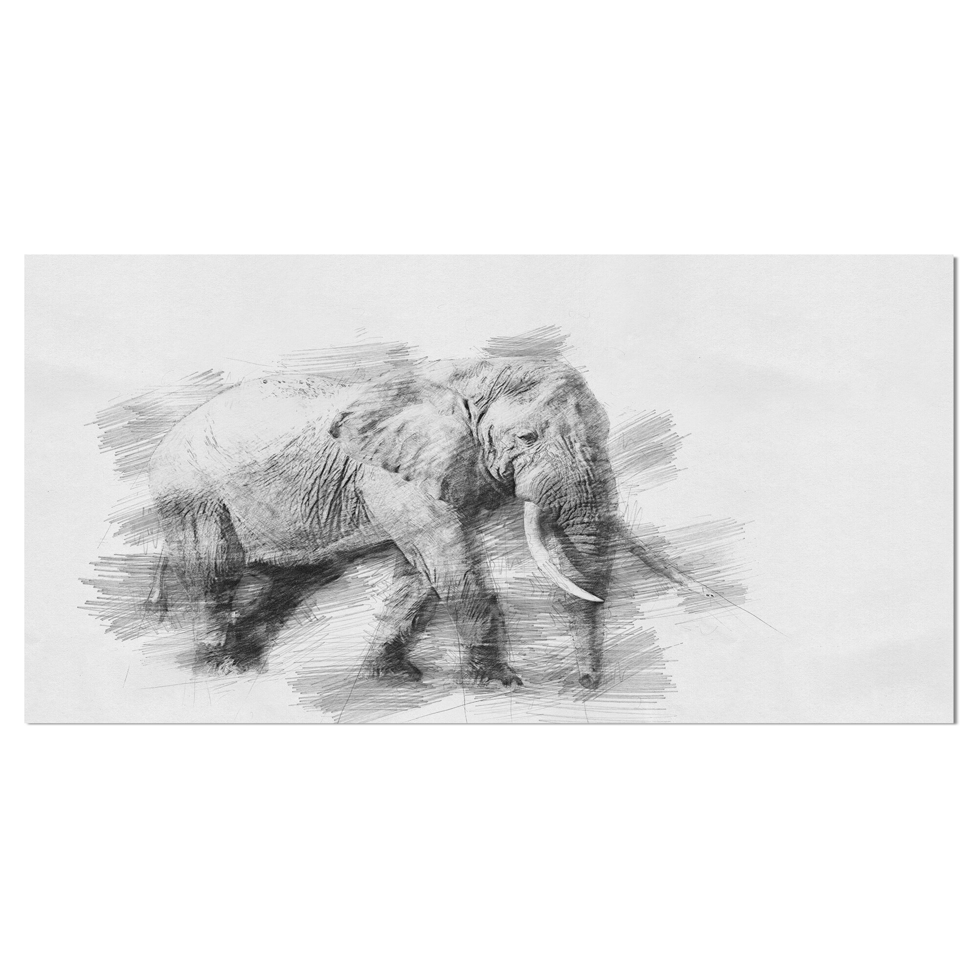 Designart "Pencil Elephant Sketch in Black and White" Animals Print on Wrapped Canvas - White