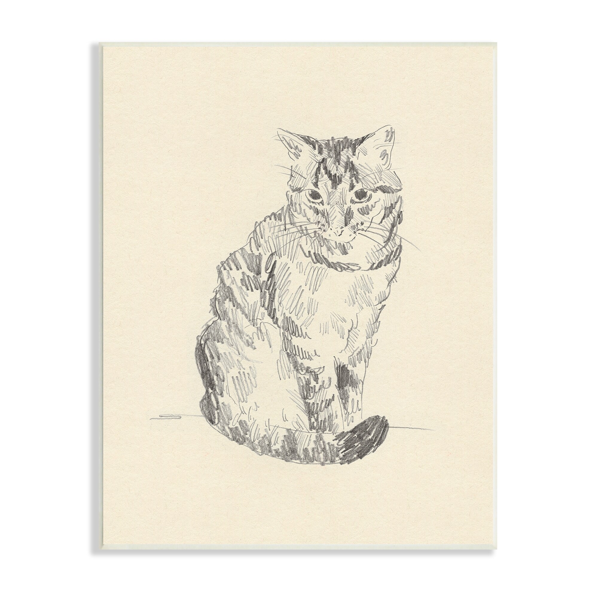 Stupell Industries House Cat Pet Portrait Pencil Sketch Traditional Illustration Wood Wall Art, 10 x 15 - Yellow
