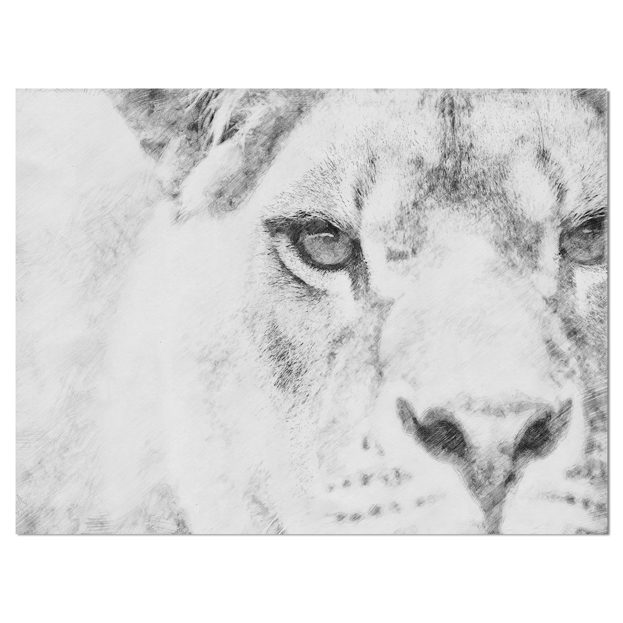 Designart "Leopard in Black And White Pencil Sketch" Sketch Animals Print on Wrapped Canvas on Wrapped Canvas