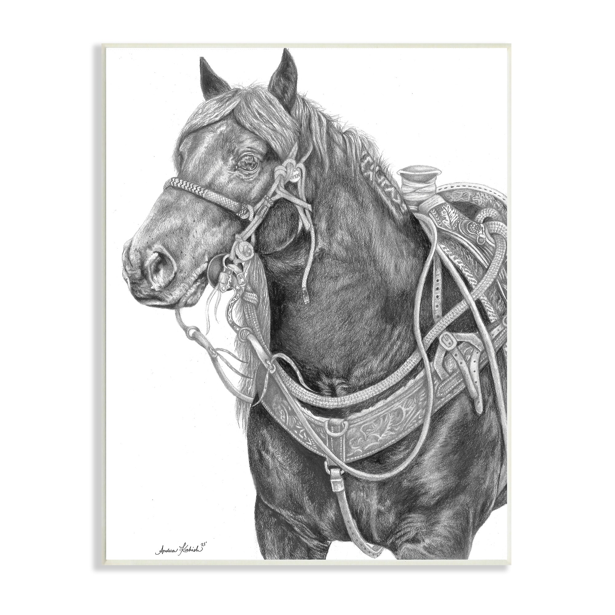 Stupell Industries Riding Horse Portrait Minimal Elegant Pencil Mark Pattern Wood Wall Art - Black