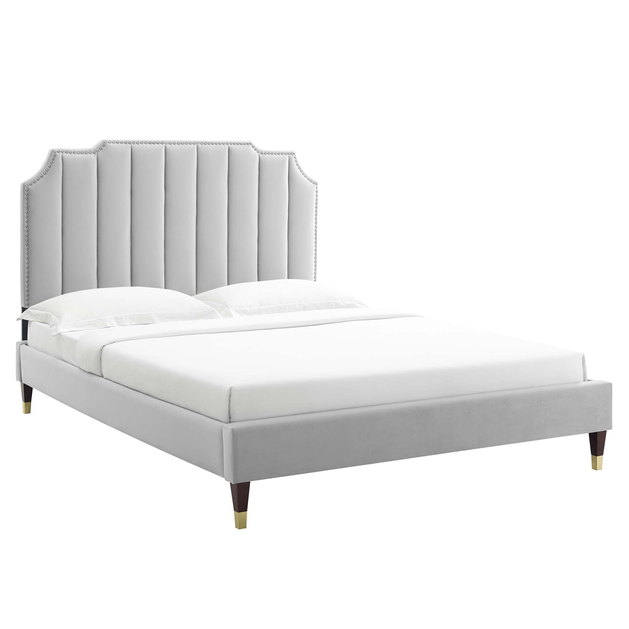 Yasmine Channel Tufted Performance Velvet Queen Platform Bed