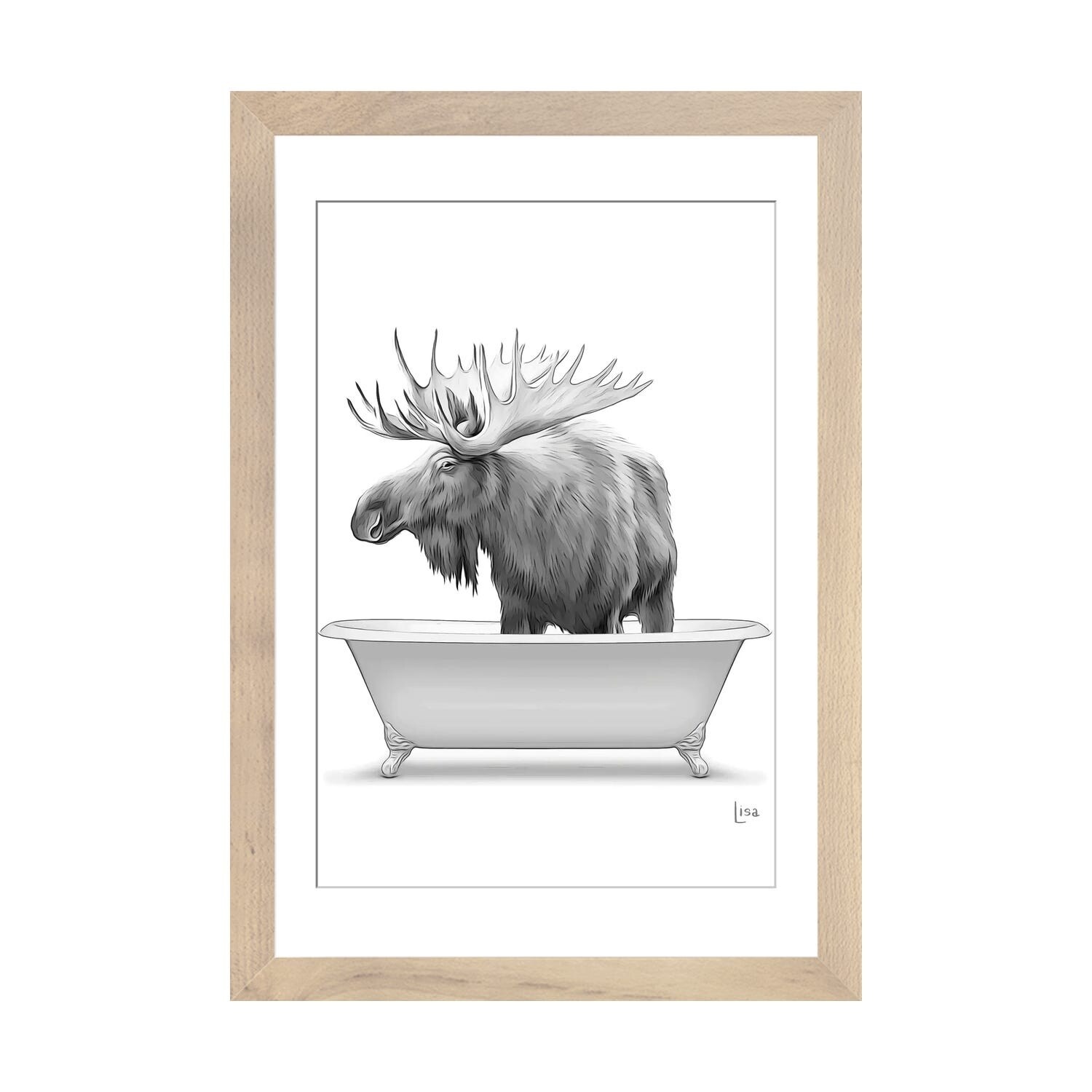 iCanvas "Moose In Bathtub Black And White" by Printable Lisa's Pets