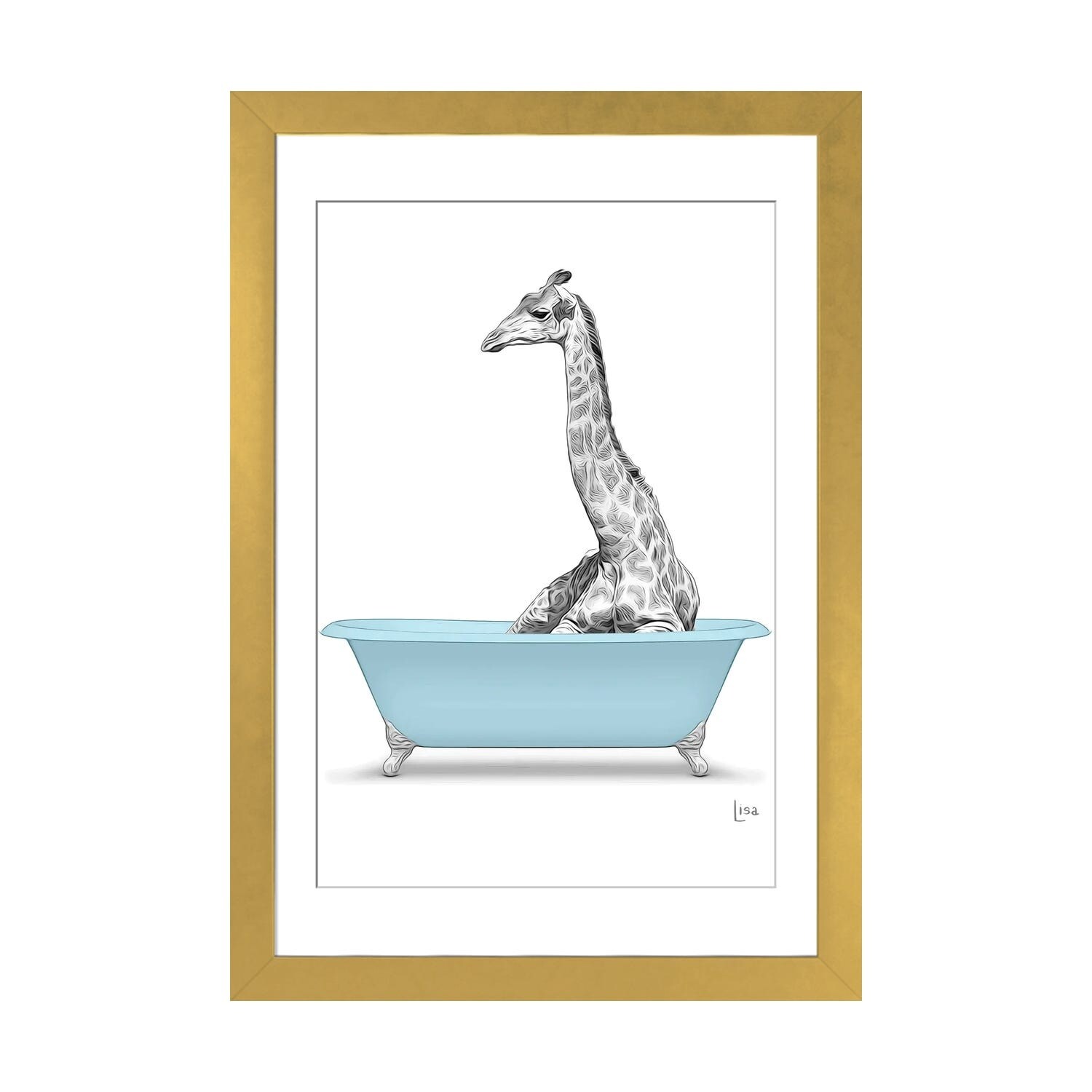 iCanvas "Color Giraffe in the Bath" by Printable Lisa's Pets Framed