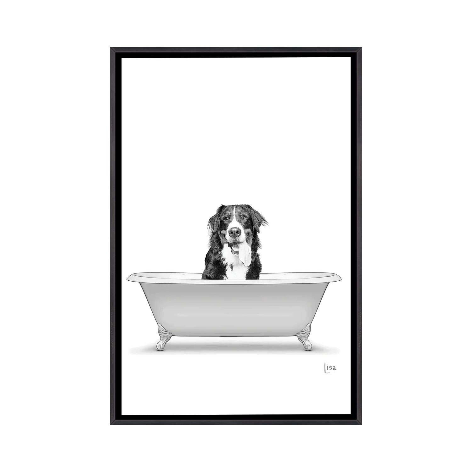 iCanvas "Bernese Mountain Dog in Bathtub" by Printable Lisa's Pets Framed