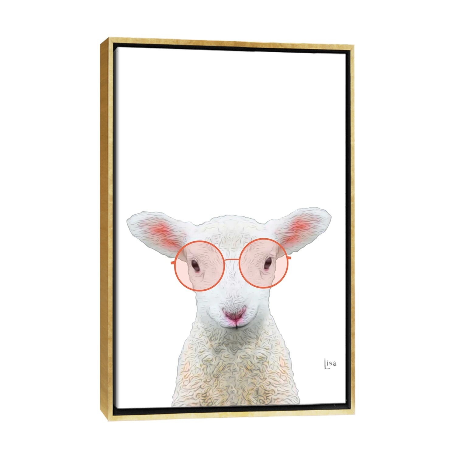 iCanvas "Color Sheep With Pink Glasses" by Printable Lisa's Pets Framed