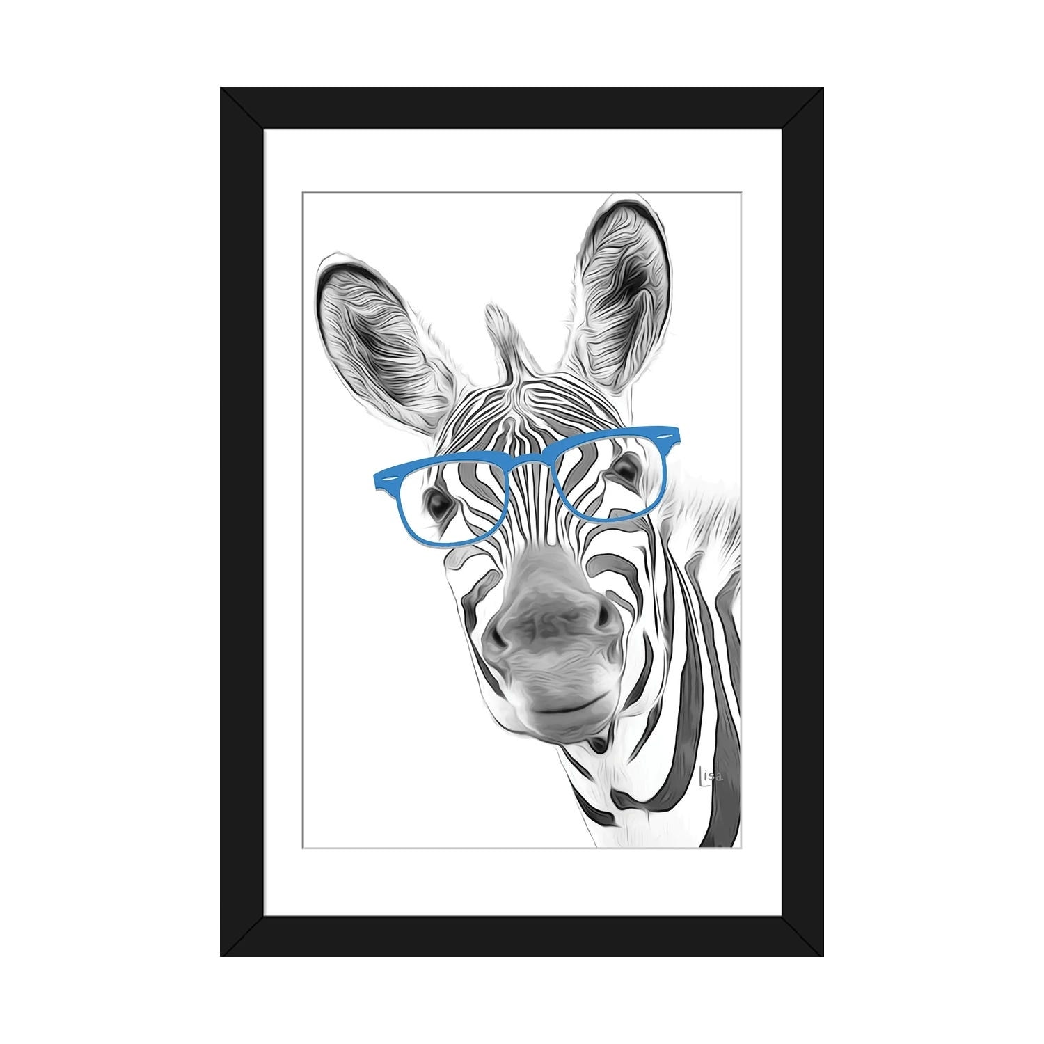 iCanvas "Zebra With Glasses" by Printable Lisa's Pets Framed