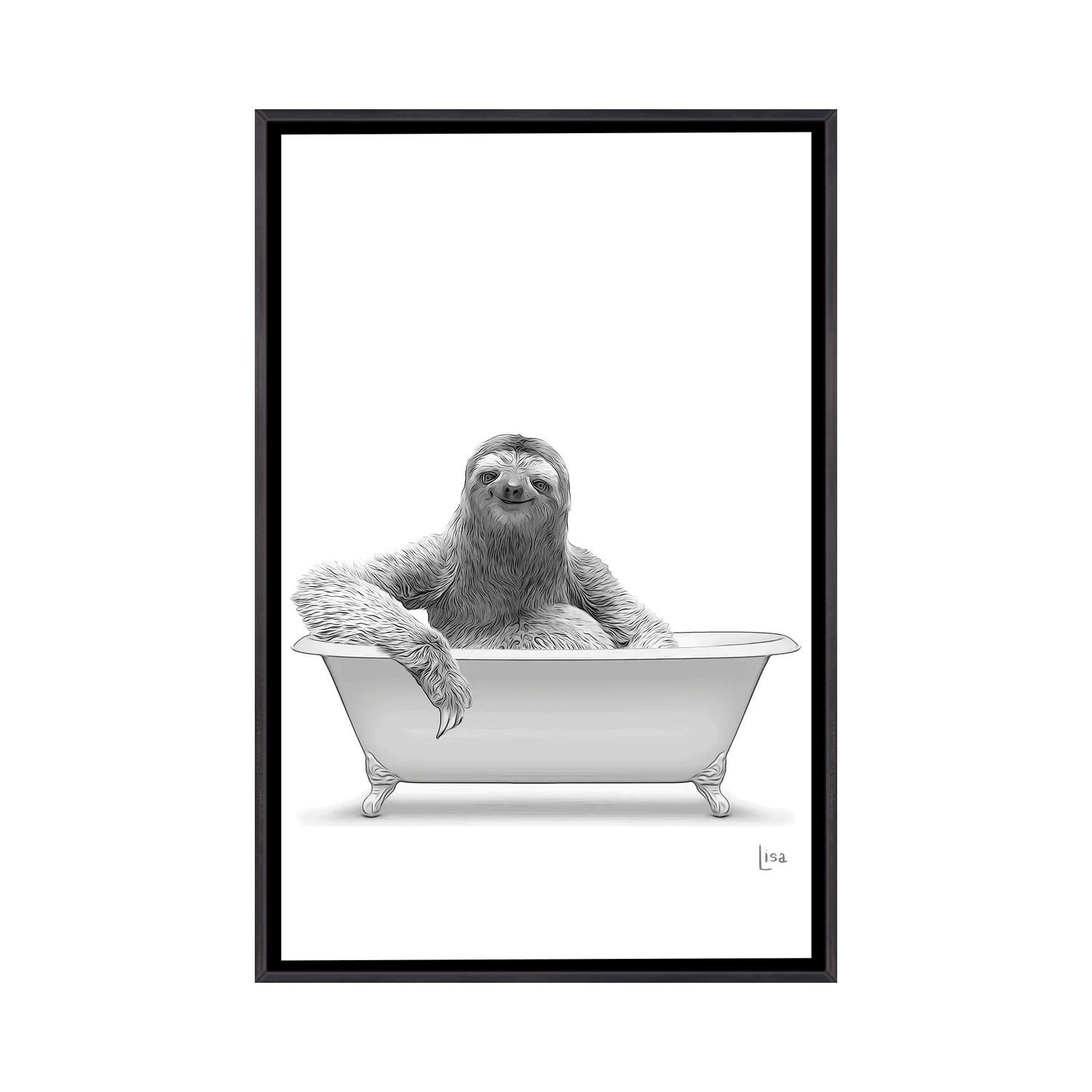 iCanvas "Sloth In Bathtub Black And White" by Printable Lisa's Pets Framed