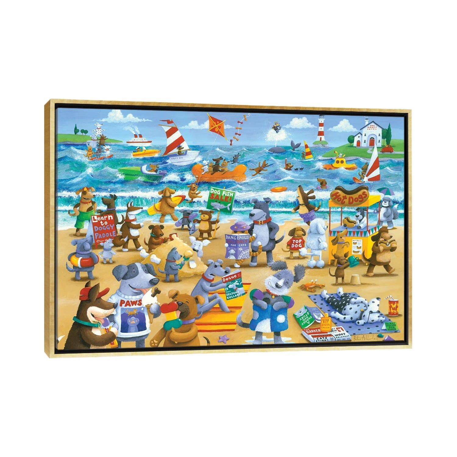 iCanvas "Dogs Beach" by Peter Adderley Framed Canvas Print