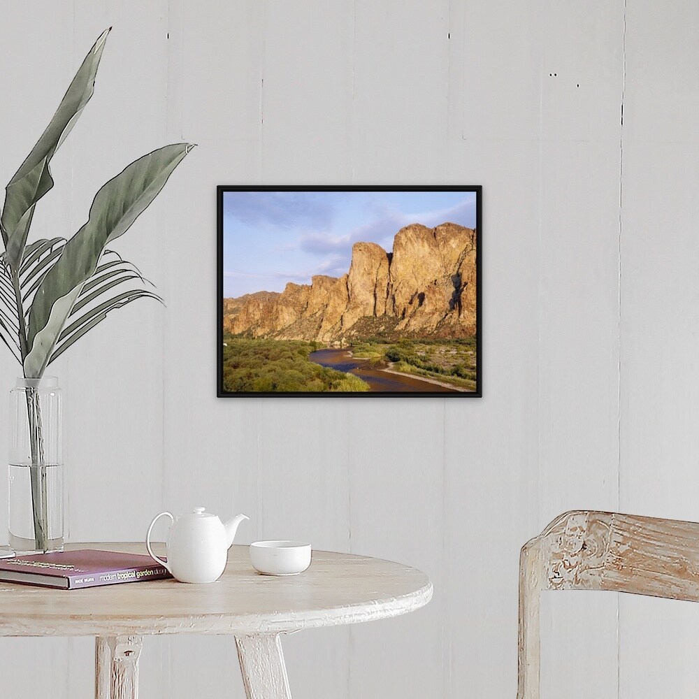"Rock formations in front of a river, Salt River, Phoenix, Arizona" Black Float Frame Canvas Art
