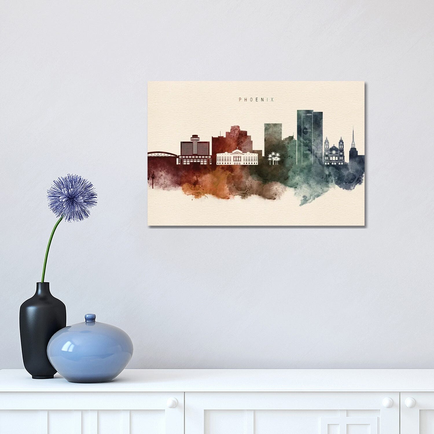 iCanvas "Phoenix Skyline in Watercolor Background" by Paul Rommer Canvas Print