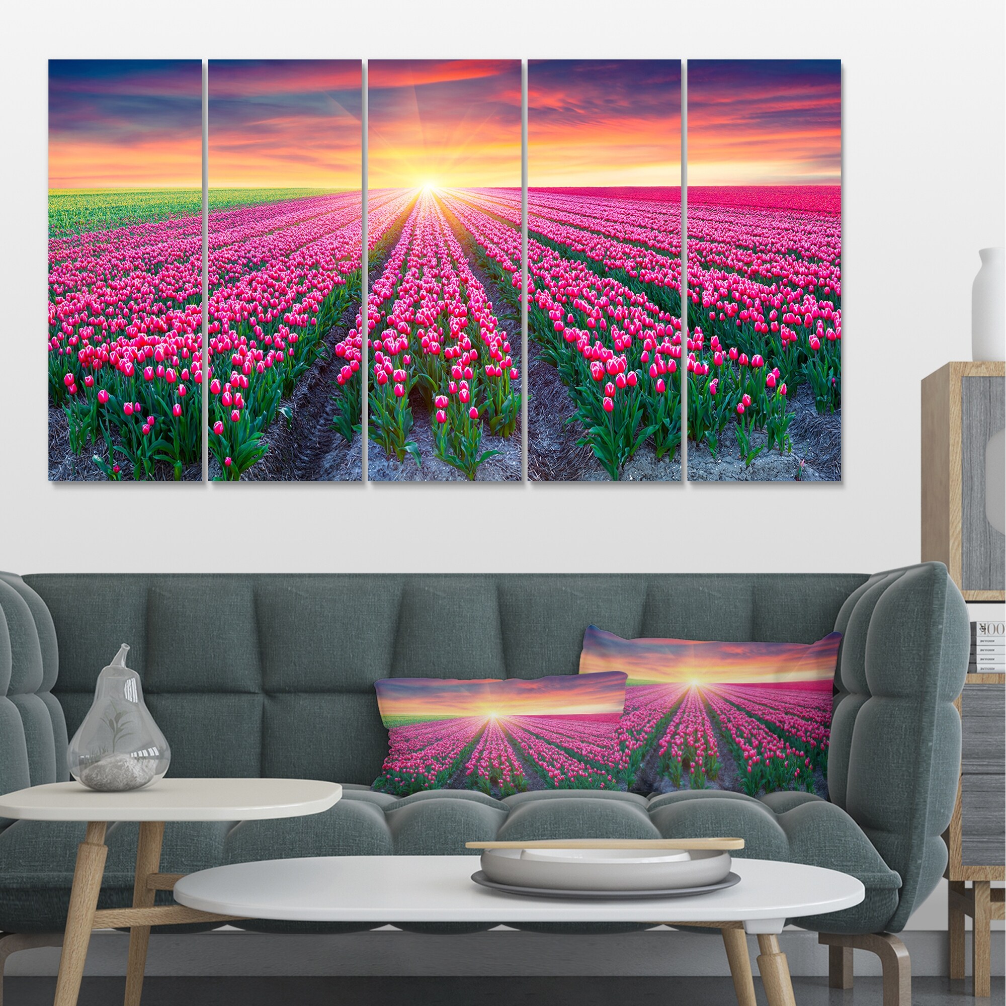 Designart "Blooming Tulips at Sunrise" Photography Canvas Art Print