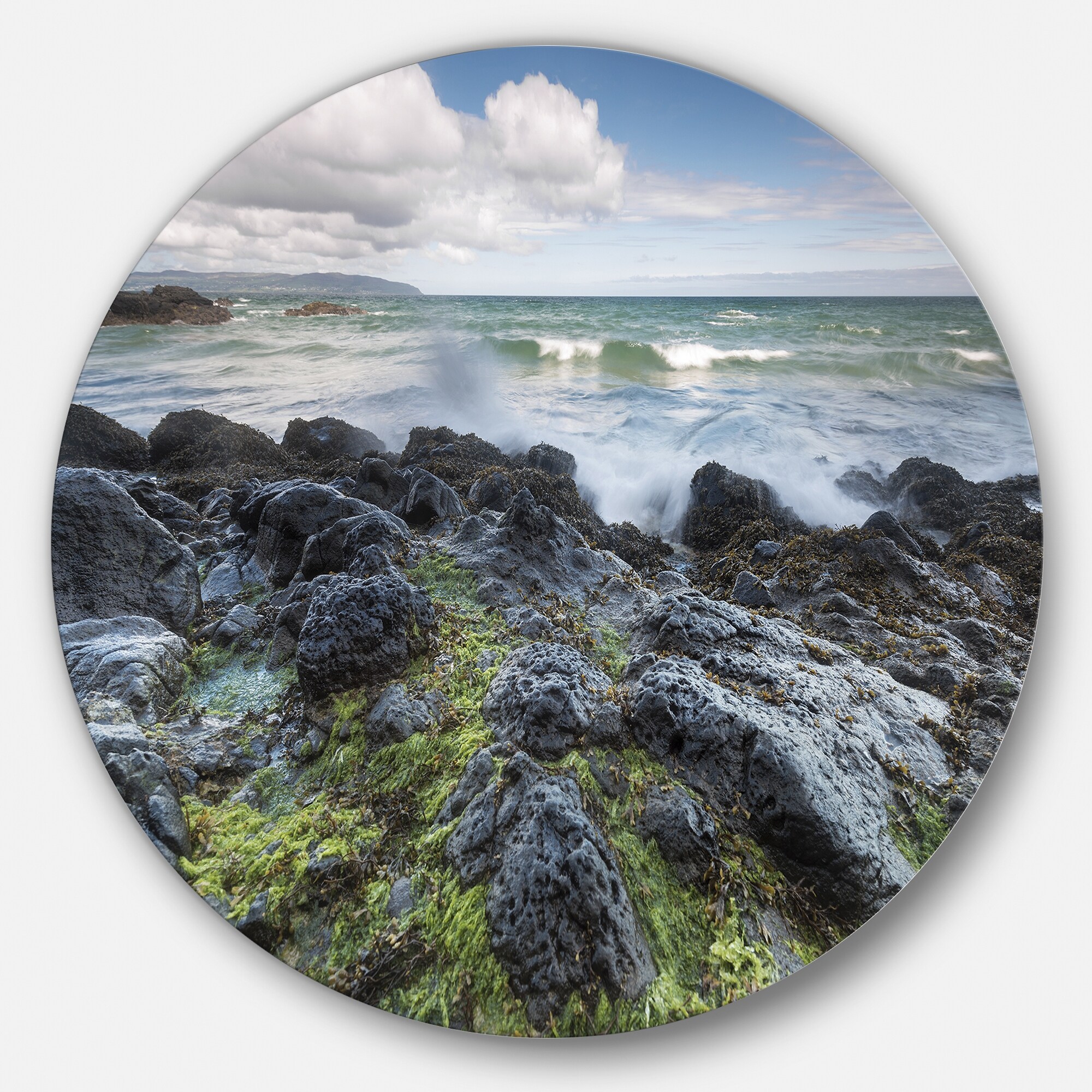 Designart 'Rocky North Ireland' Seashore Photography Round Wall Art