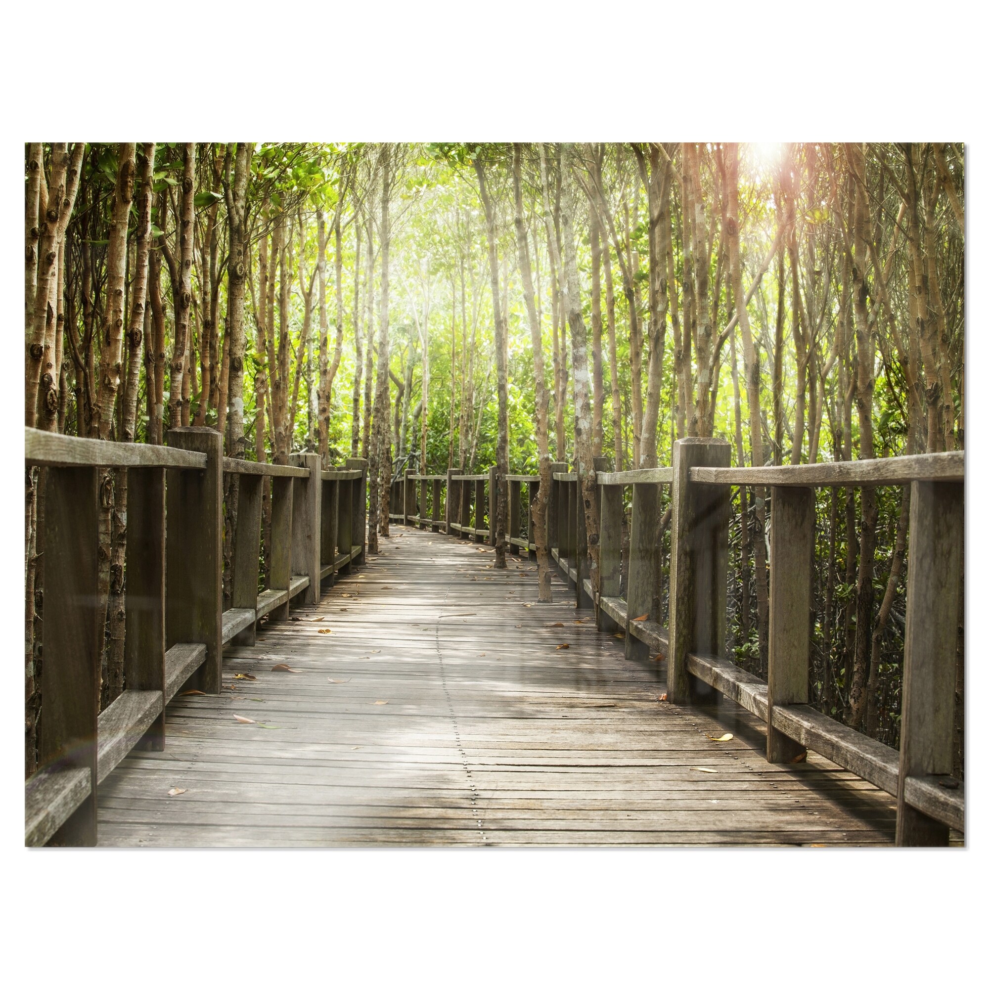 Designart 'Wooden Bridge in Forest' Landscape Photography Metal Wall Art