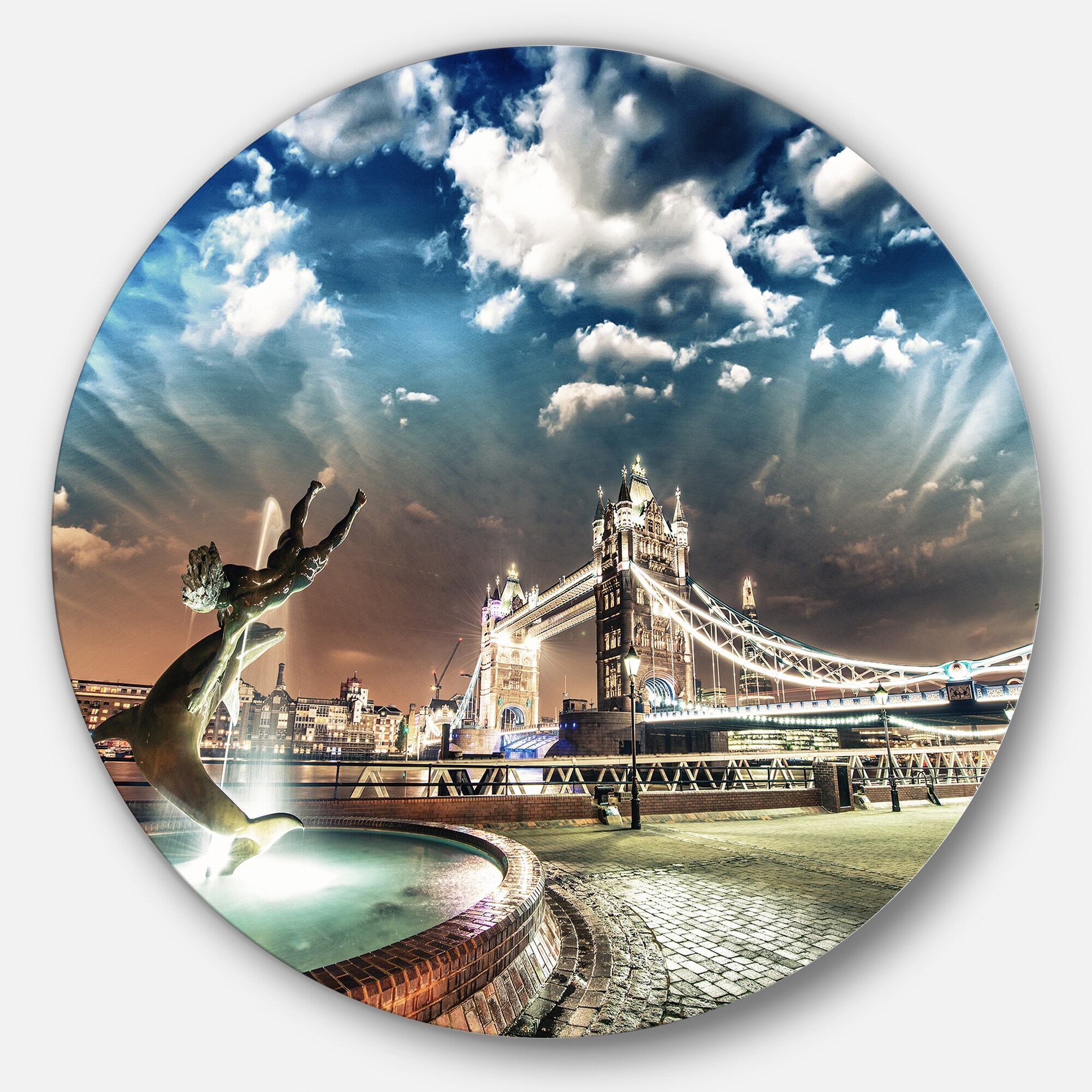 Designart 'Tower Bridge at Night' Landscape Photography Round Wall Art