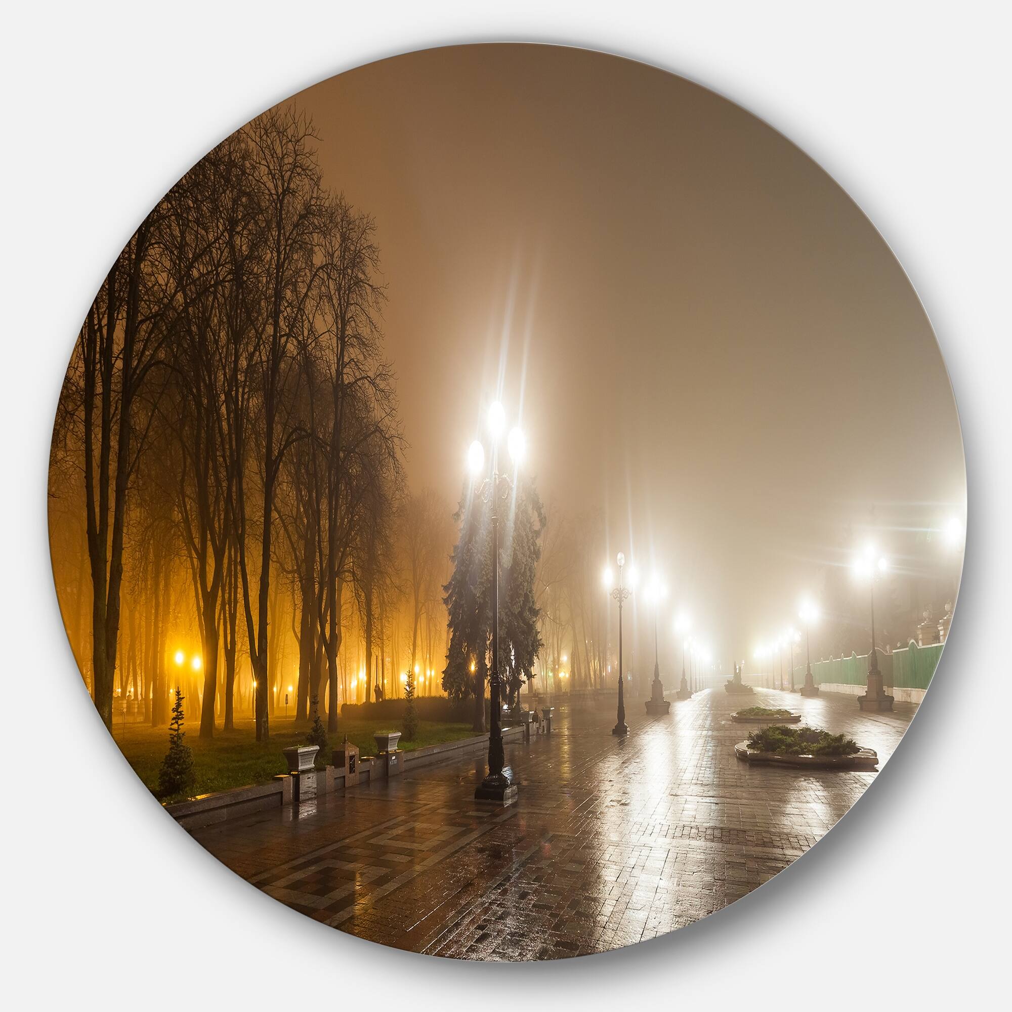 Designart 'Avenue of City Park at Night' Cityscape Photography Circle Wall Art